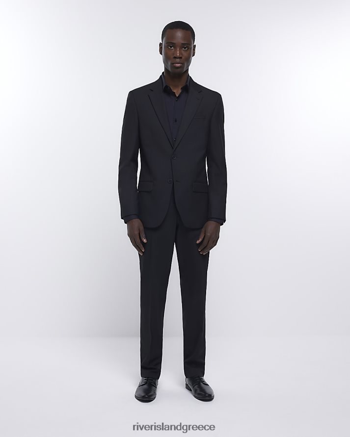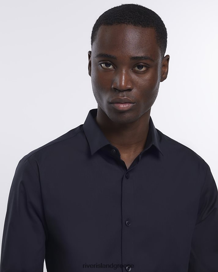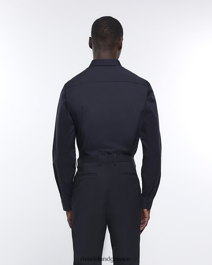 River Island ενδύματα μαύρος άνδρες μακρυμάνικο πουκάμισο σε λεπτή εφαρμογή B6N8X2545