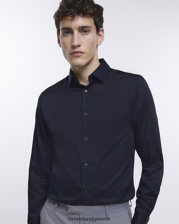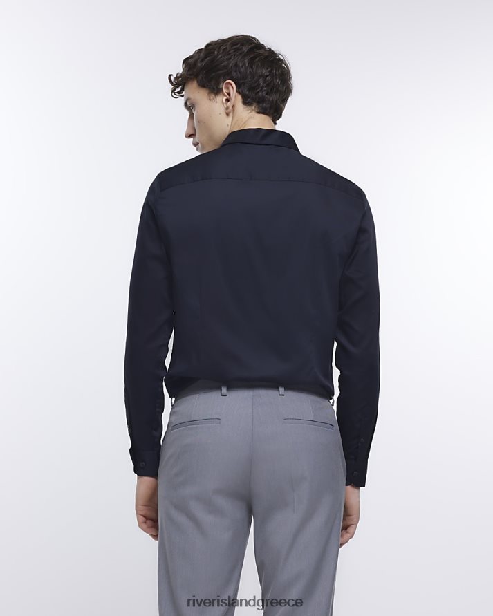 River Island ενδύματα μαύρος άνδρες μακρυμάνικο σατέν πουκάμισο σε λεπτή εφαρμογή B6N8X5429
