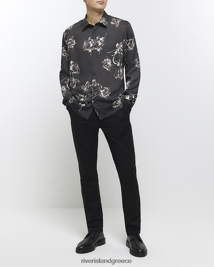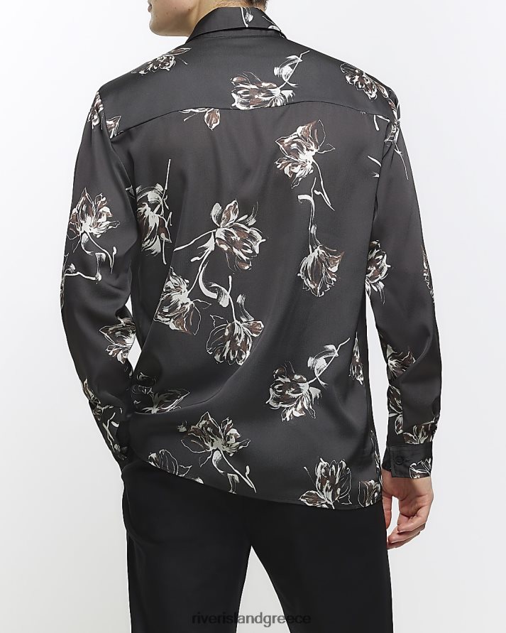 River Island ενδύματα μαύρος άνδρες φλοράλ πουκάμισο με κανονική εφαρμογή B6N8X5516