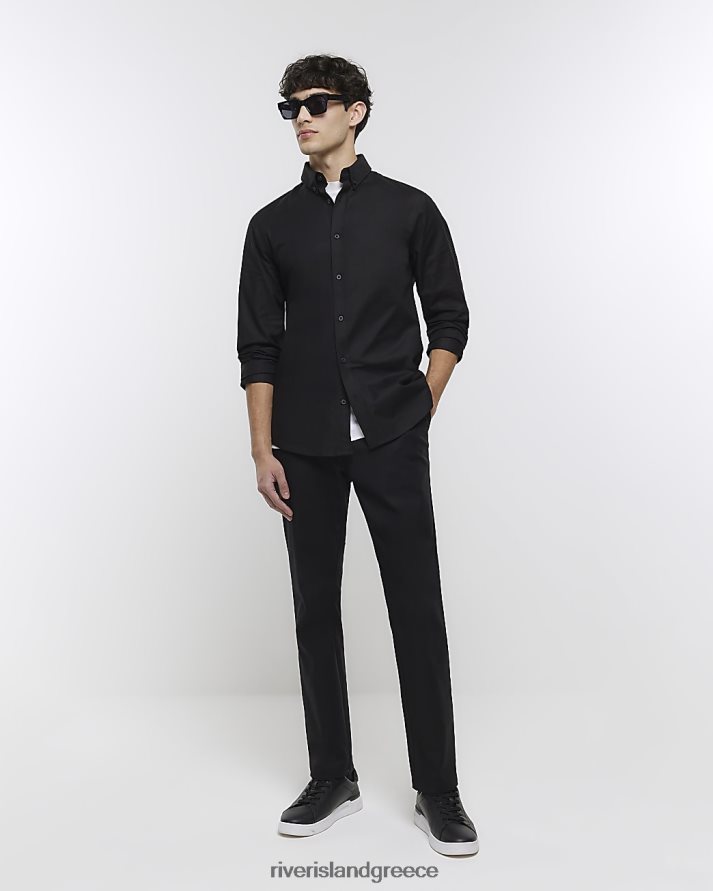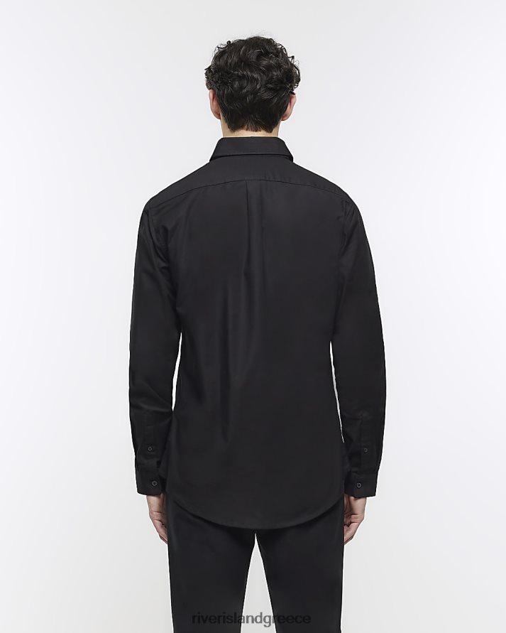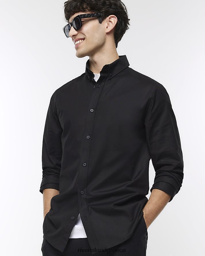 River Island ενδύματα μαύρος άνδρες slim fit stretch oxford πουκάμισο B6N8X3112