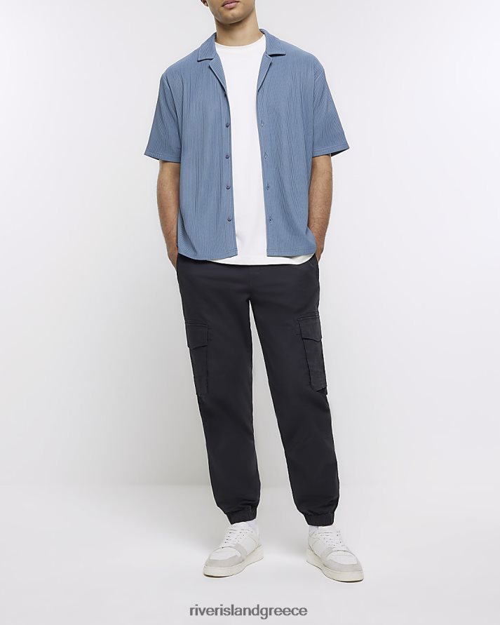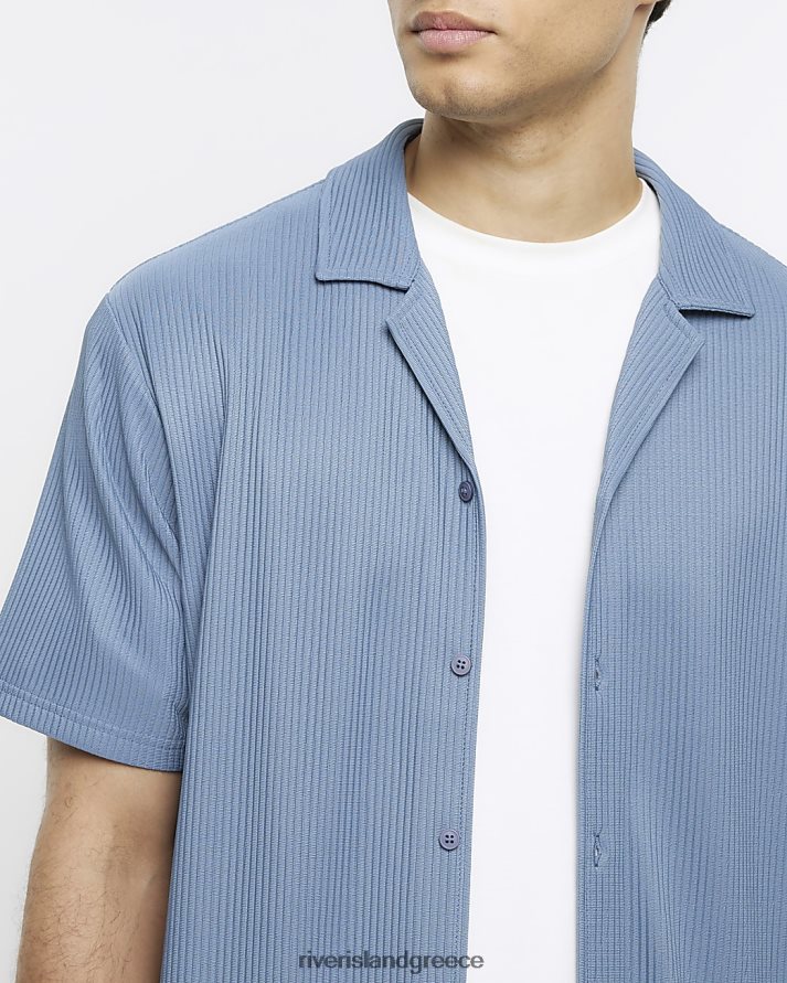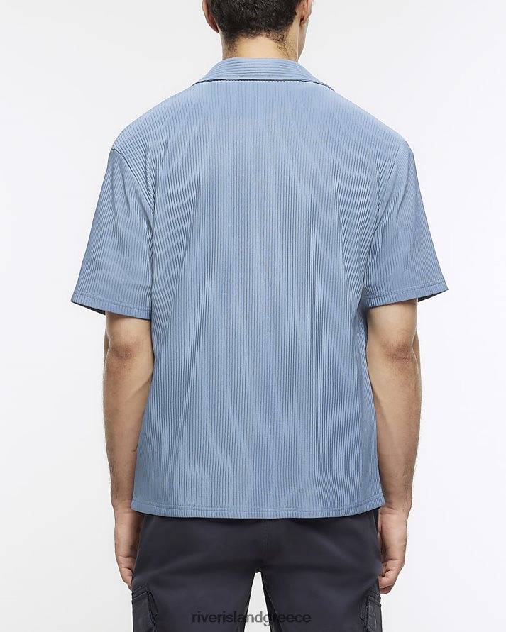 River Island ενδύματα μπλε άνδρες κανονική εφαρμογή plisse revere πουκάμισο B6N8X2433