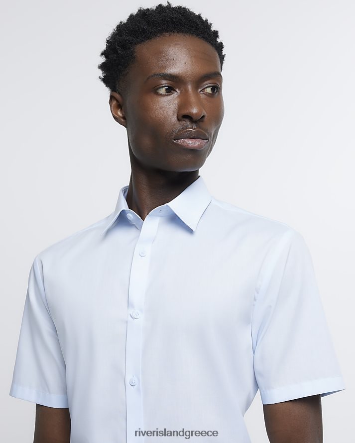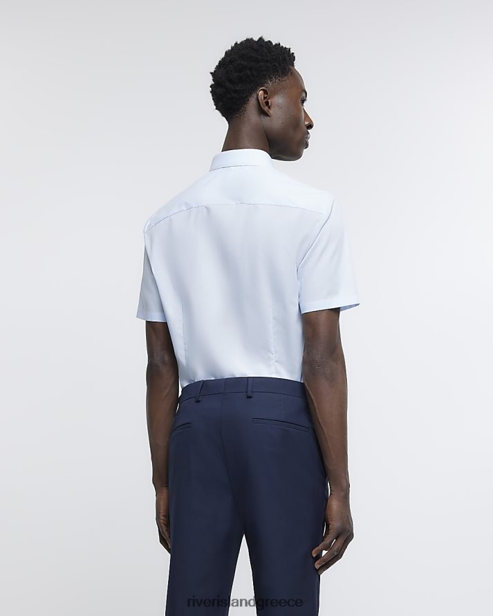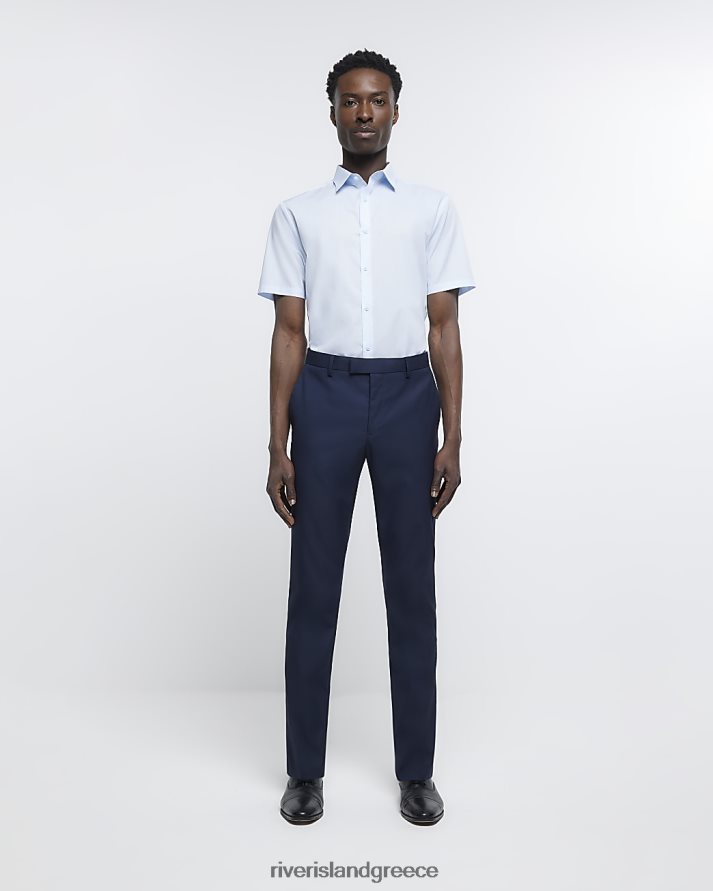 River Island ενδύματα μπλε άνδρες κοντομάνικο πουκάμισο σε στενή εφαρμογή B6N8X2587