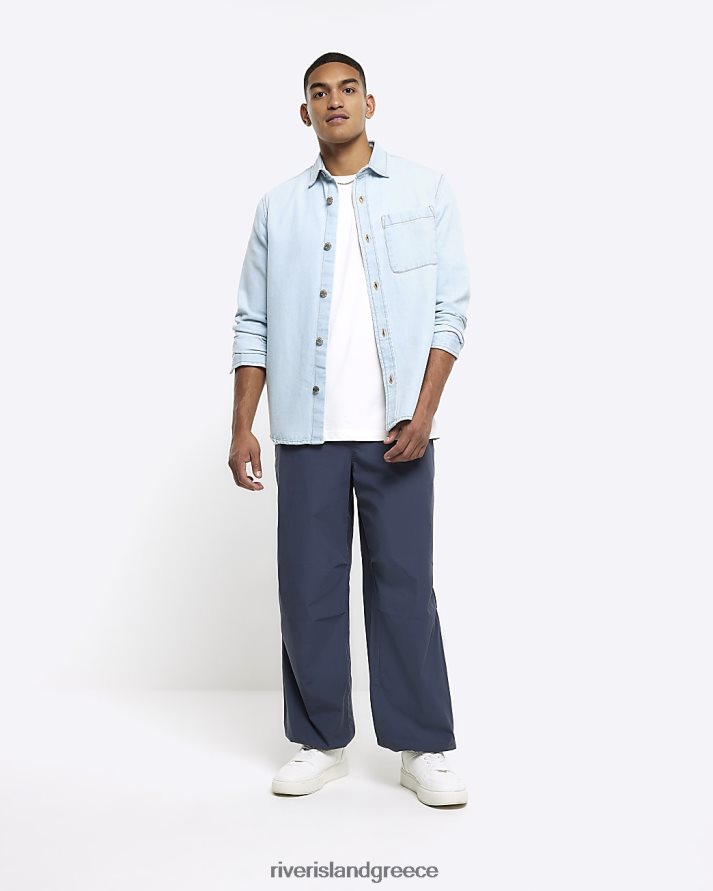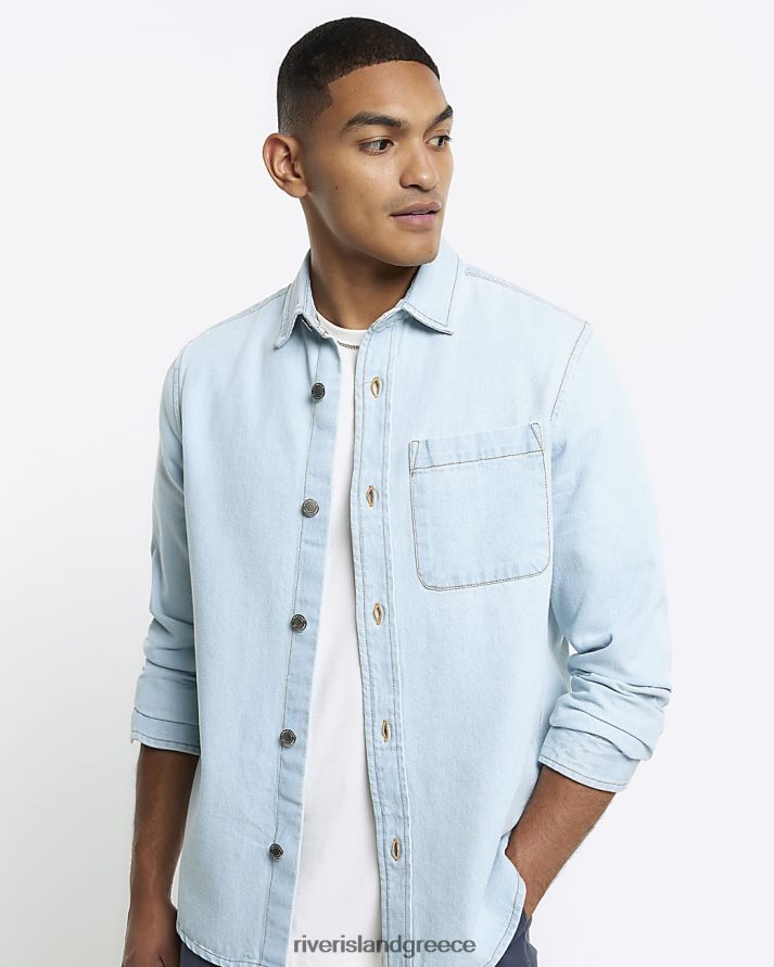 River Island ενδύματα μπλε άνδρες τζιν πουκάμισο με κανονική εφαρμογή B6N8X2757