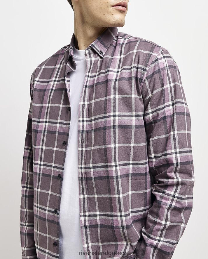 River Island ενδύματα μωβ άνδρες πουκάμισο με κανονική εφαρμογή B6N8X2812