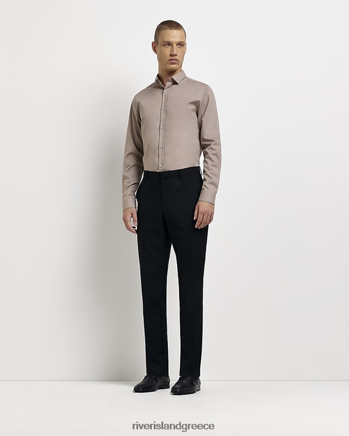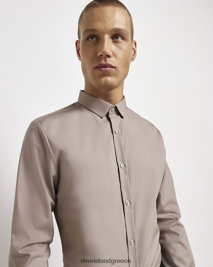 River Island ενδύματα πέτρα άνδρες μακρυμάνικο πουκάμισο σε λεπτή εφαρμογή B6N8X2549