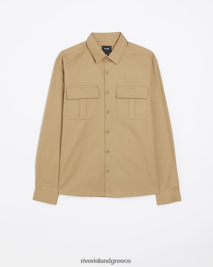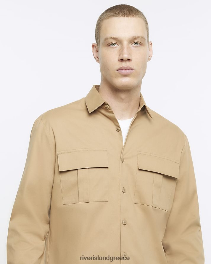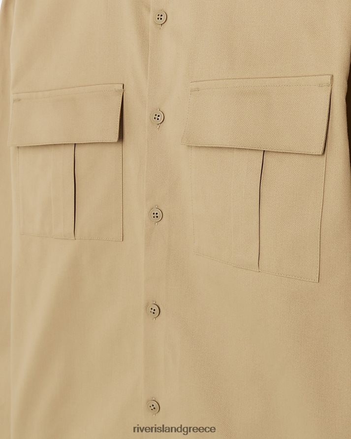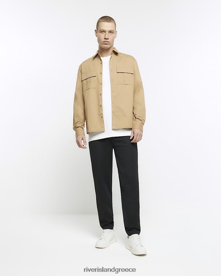 River Island ενδύματα πέτρα άνδρες μακρύ χρηστικό μπλουζάκι με κανονική εφαρμογή B6N8X5678