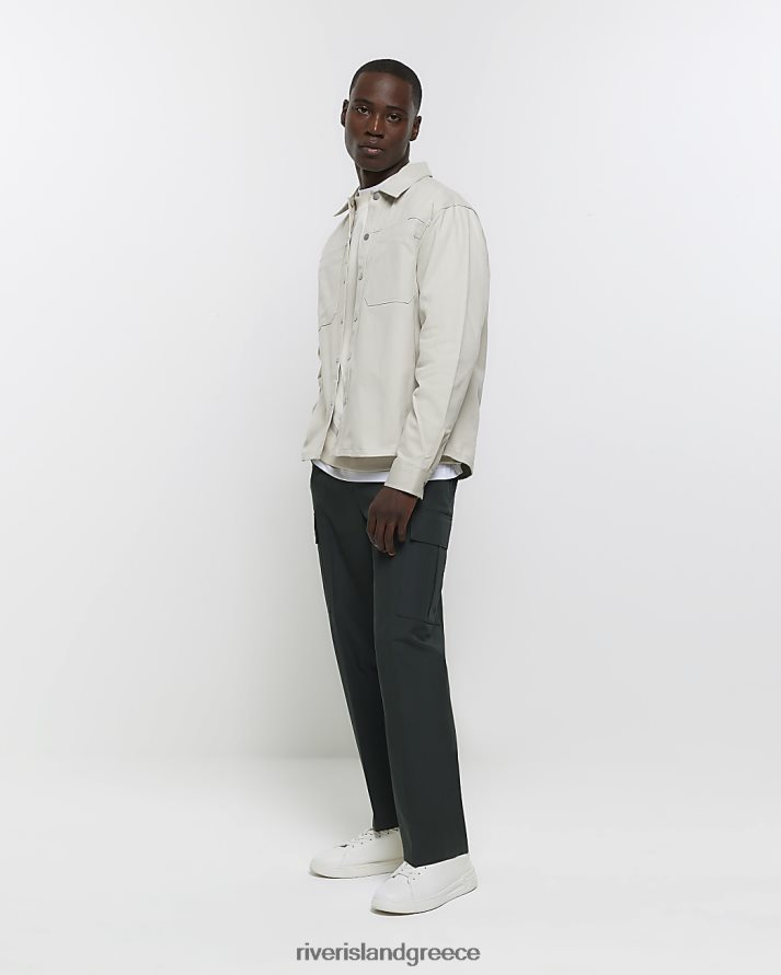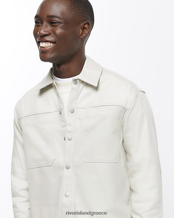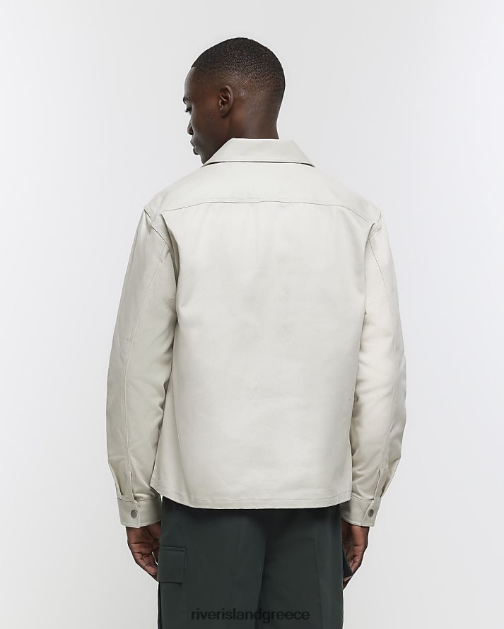 River Island ενδύματα πέτρα άνδρες μπλουζάκι με κανονική εφαρμογή popper μπροστά B6N8X2412