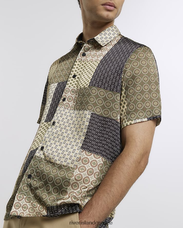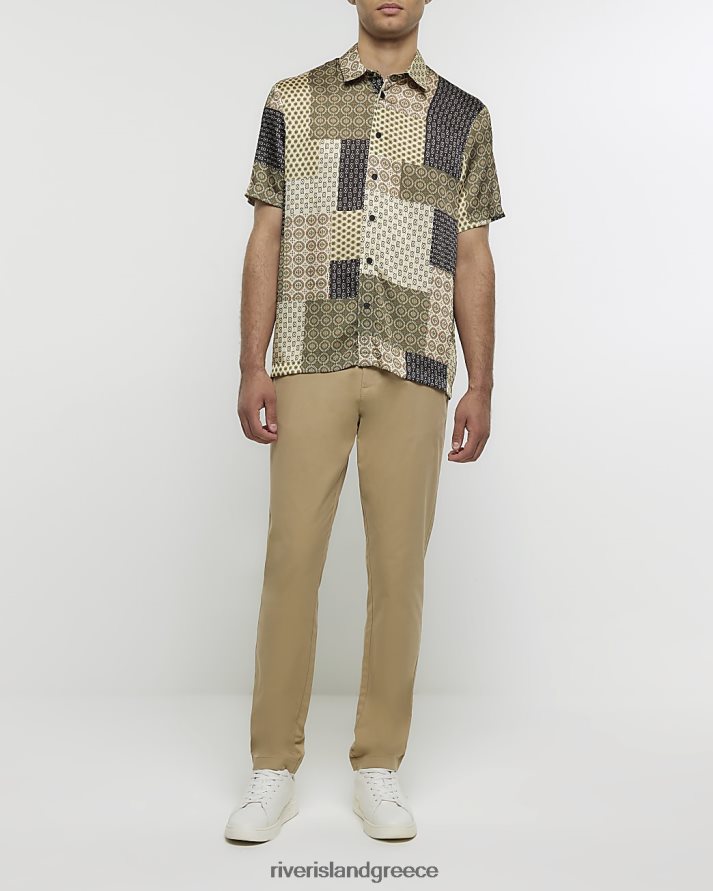 River Island ενδύματα πέτρα άνδρες πουκάμισο με κανονική εφαρμογή B6N8X2759