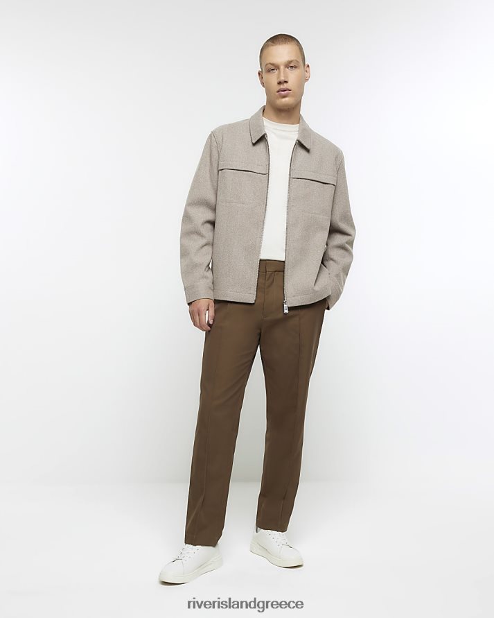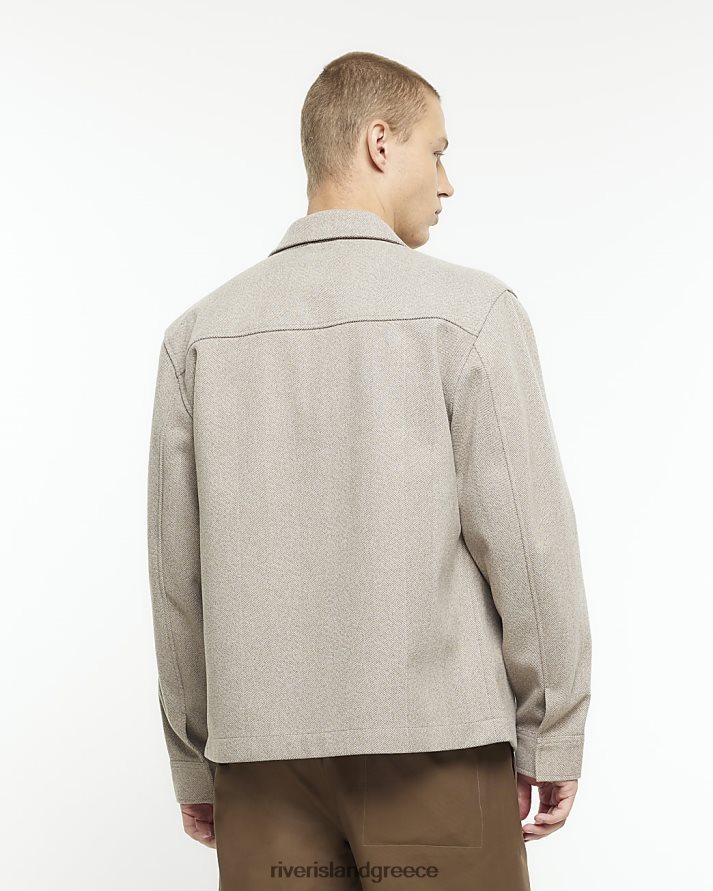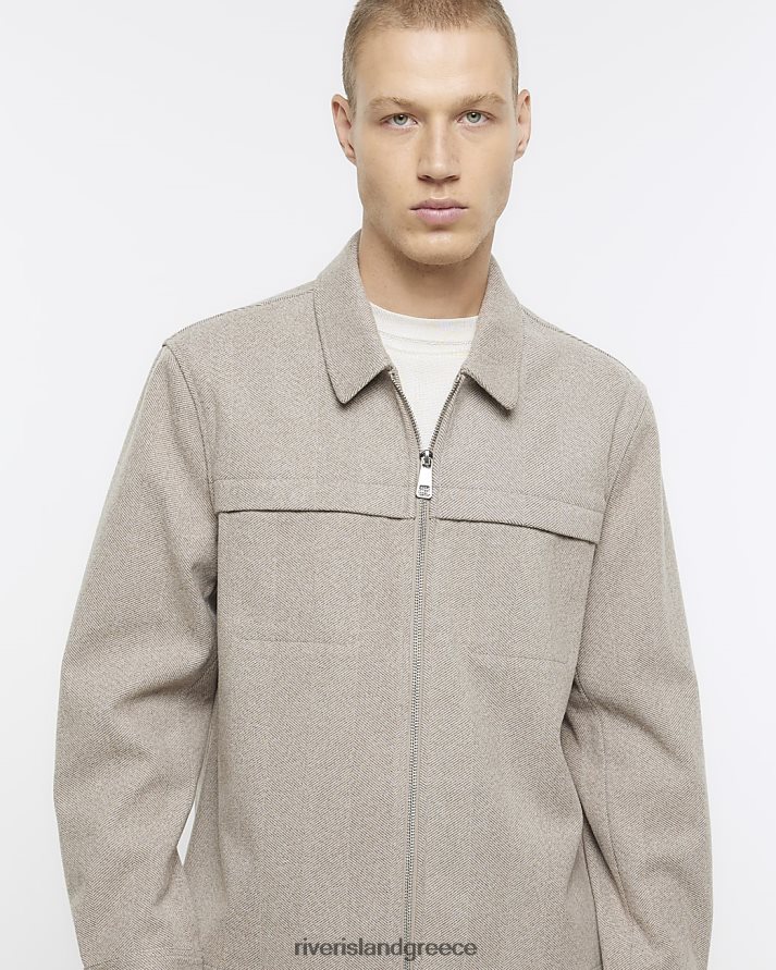 River Island ενδύματα πέτρα άνδρες πουκάμισο με φερμουάρ σε κανονική εφαρμογή B6N8X5599