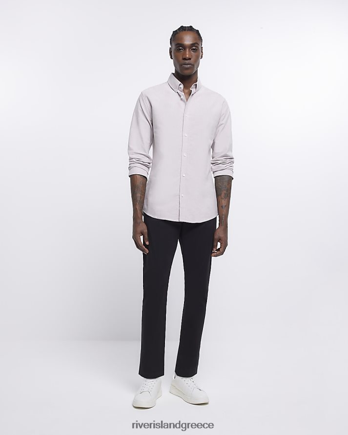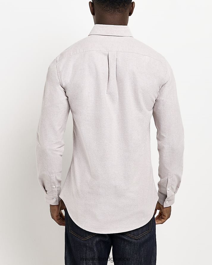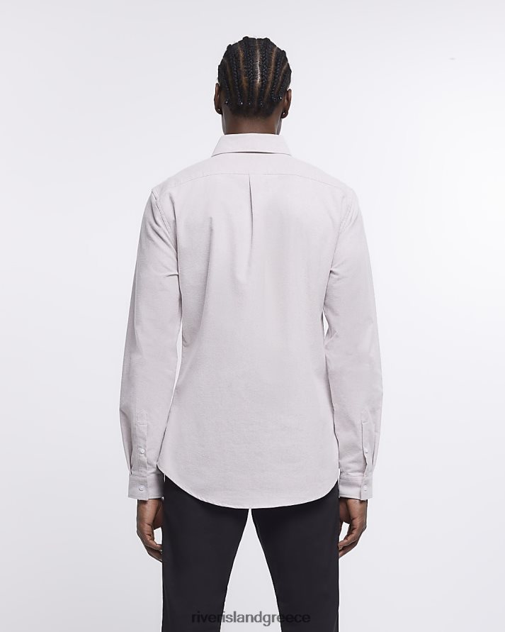 River Island ενδύματα πέτρα άνδρες πουκάμισο oxford σε λεπτή εφαρμογή B6N8X2647