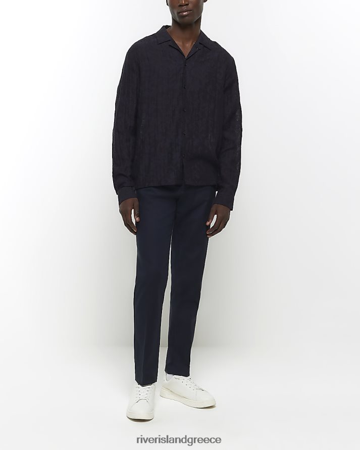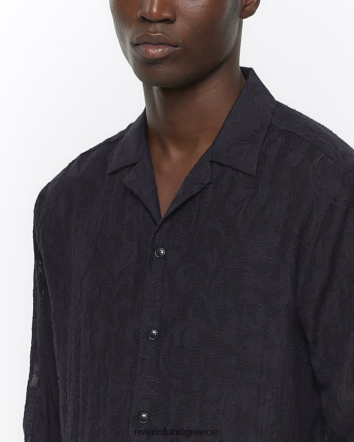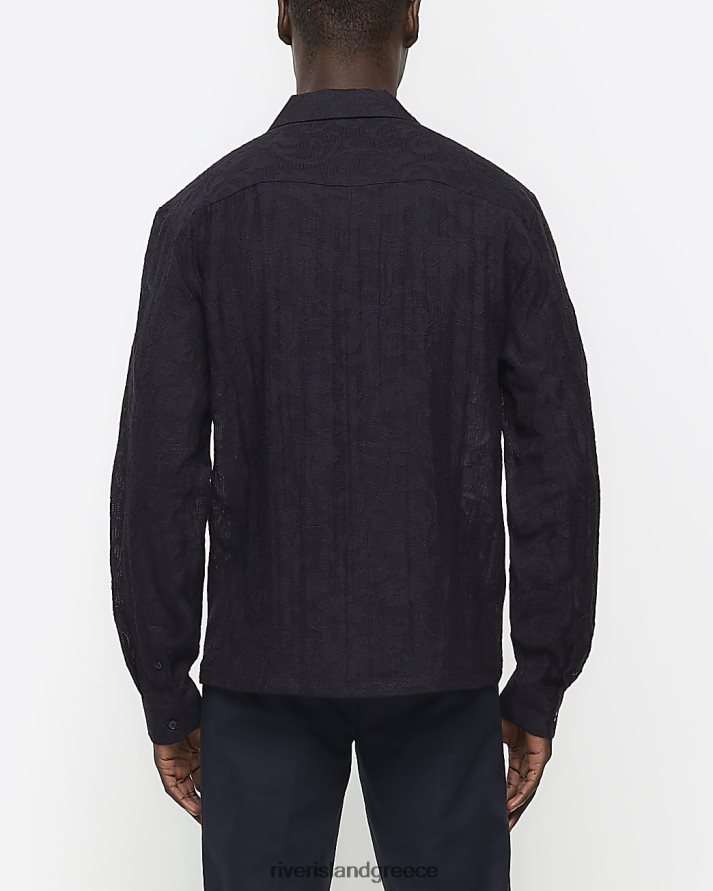 River Island ενδύματα ΠΟΛΕΜΙΚΟ ΝΑΥΤΙΚΟ άνδρες Δαντελένιο πουκάμισο ζακάρ σε κανονική εφαρμογή B6N8X2614