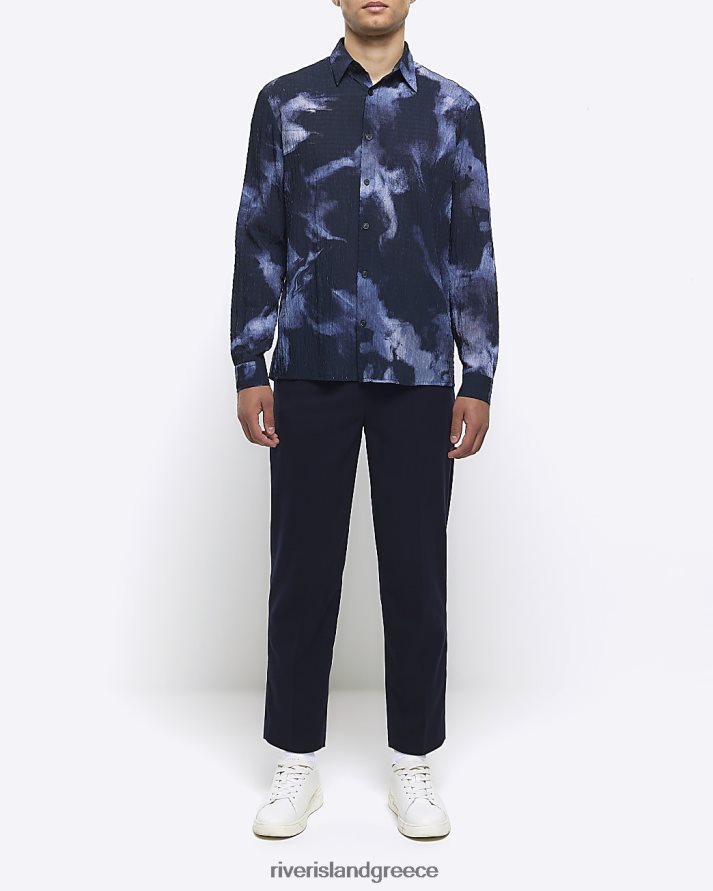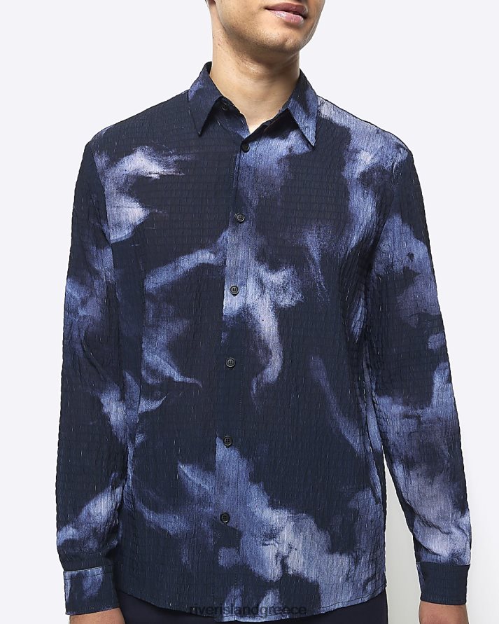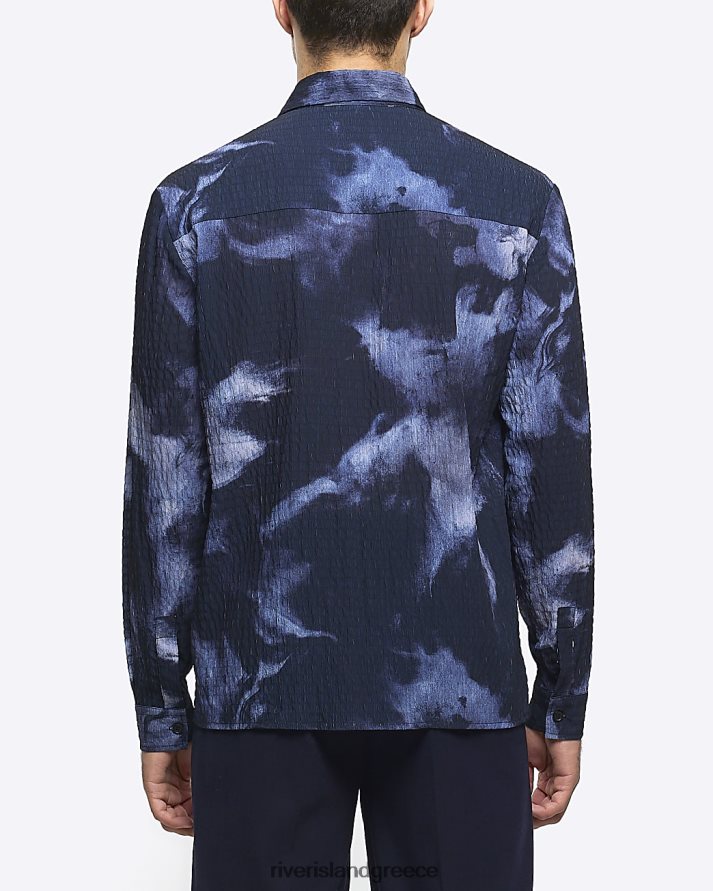 River Island ενδύματα ΠΟΛΕΜΙΚΟ ΝΑΥΤΙΚΟ άνδρες κανονική εφαρμογή ανάγλυφη αφηρημένη πουκάμισο B6N8X5562