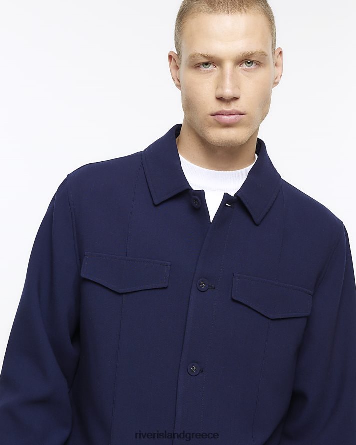 River Island ενδύματα ΠΟΛΕΜΙΚΟ ΝΑΥΤΙΚΟ άνδρες κανονική εφαρμογή με κουμπιά μπλουζάκι B6N8X5474