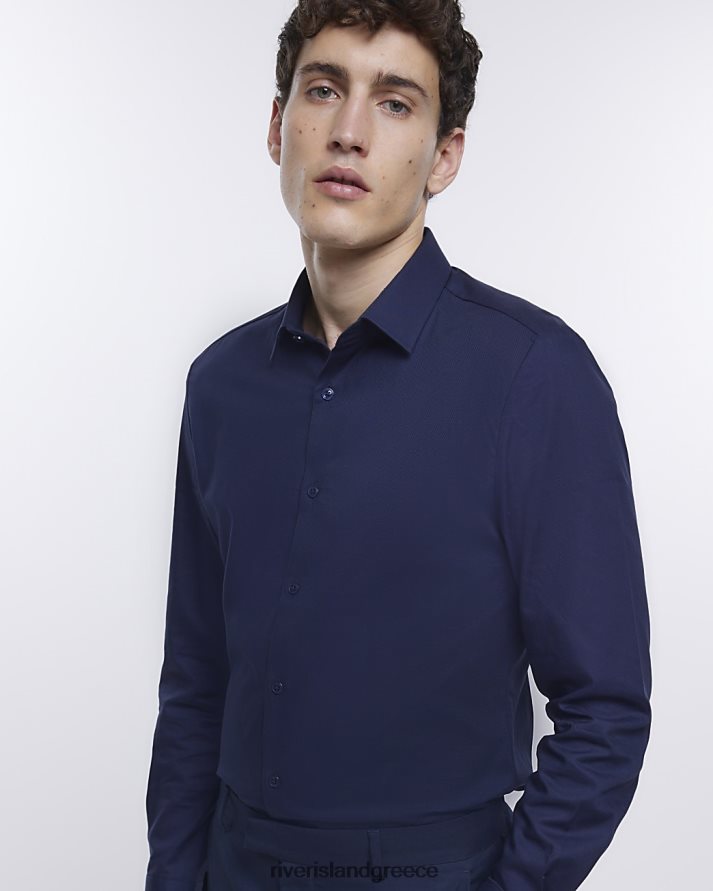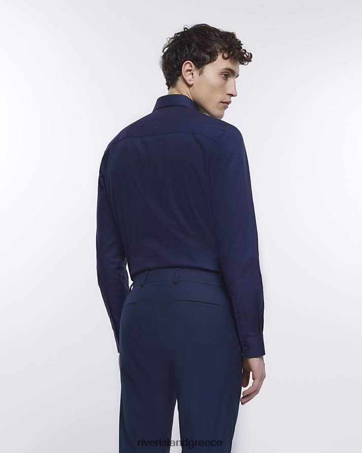 River Island ενδύματα ΠΟΛΕΜΙΚΟ ΝΑΥΤΙΚΟ άνδρες μακρυμάνικο πουκάμισο σε λεπτή εφαρμογή B6N8X3054