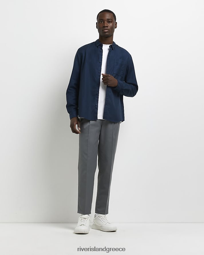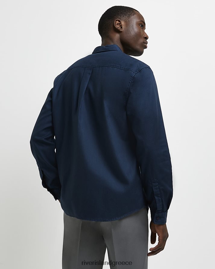 River Island ενδύματα ΠΟΛΕΜΙΚΟ ΝΑΥΤΙΚΟ άνδρες πουκάμισο lyocell με κανονική εφαρμογή B6N8X3110