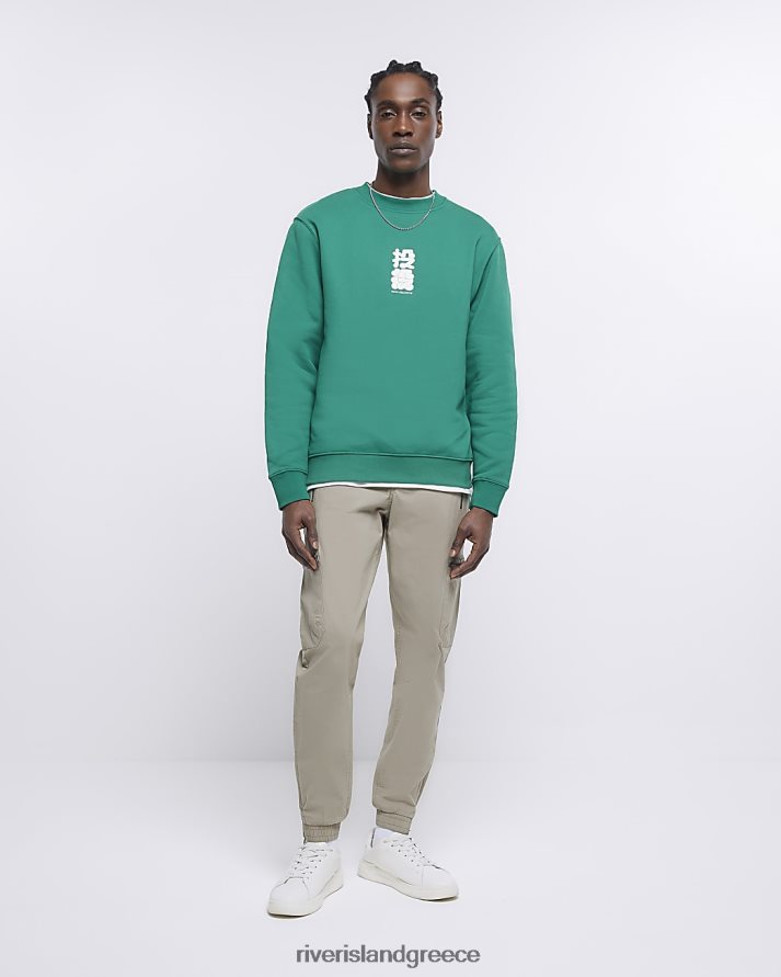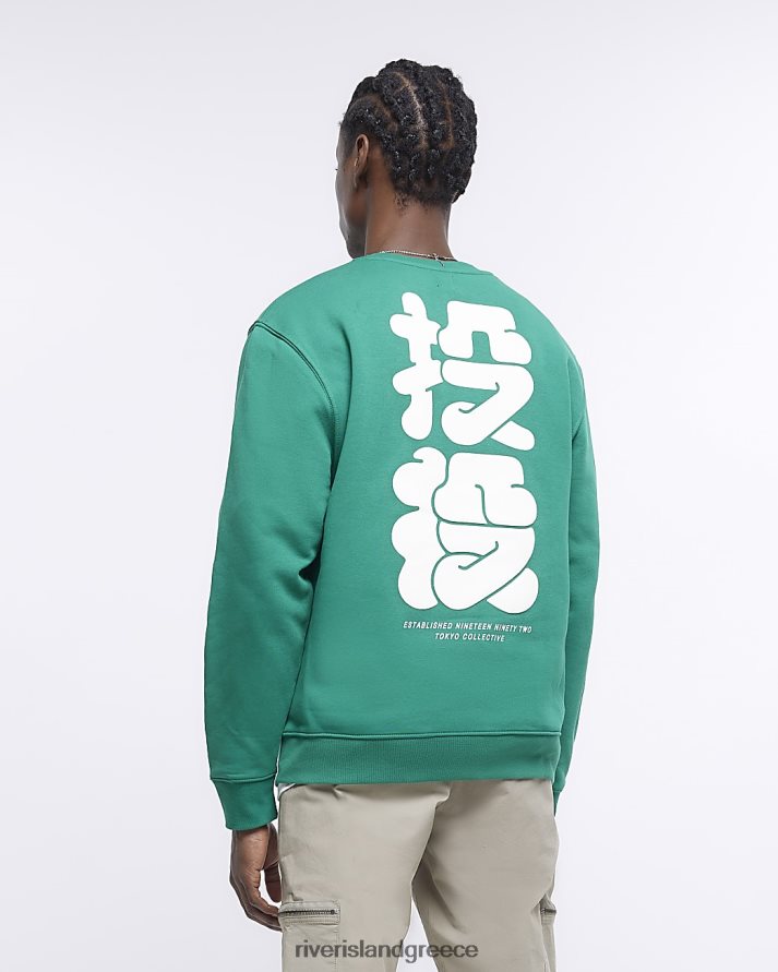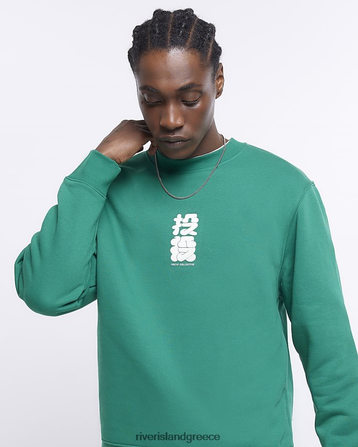 River Island ενδύματα πράσινος άνδρες φούτερ με στάμπα γκράφιτι με κανονική εφαρμογή B6N8X2559