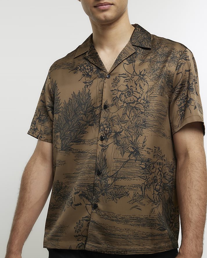 River Island ενδύματα πράσινος άνδρες floral πουκάμισο σε κανονική εφαρμογή B6N8X5398