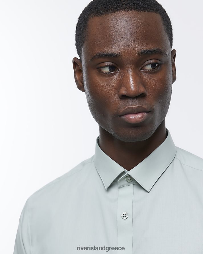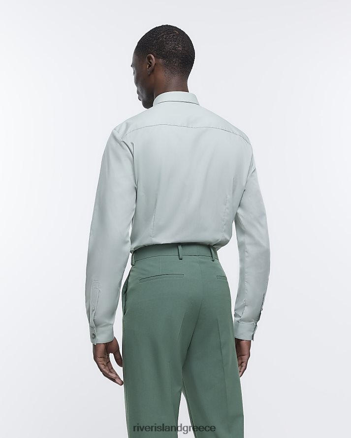 River Island ενδύματα πράσινος άνδρες slim fit smart πουκάμισο B6N8X2705