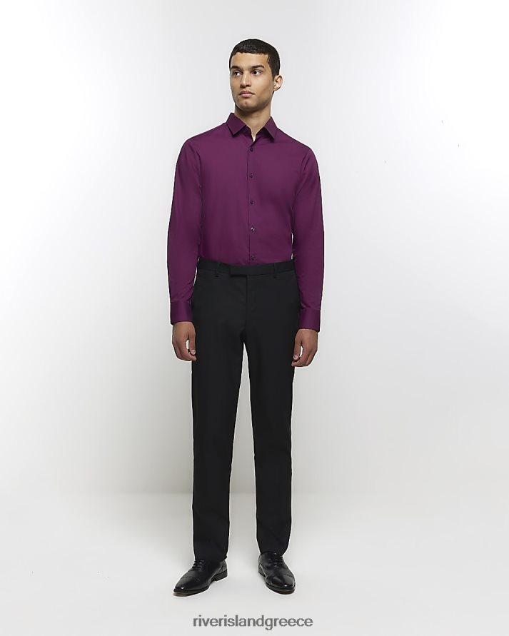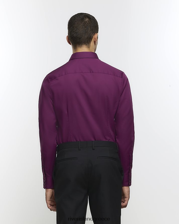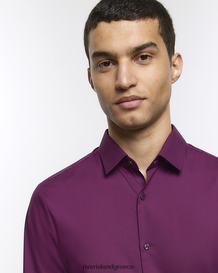 River Island ενδύματα σκούρο μοβ άνδρες slim fit smart πουκάμισο B6N8X2702