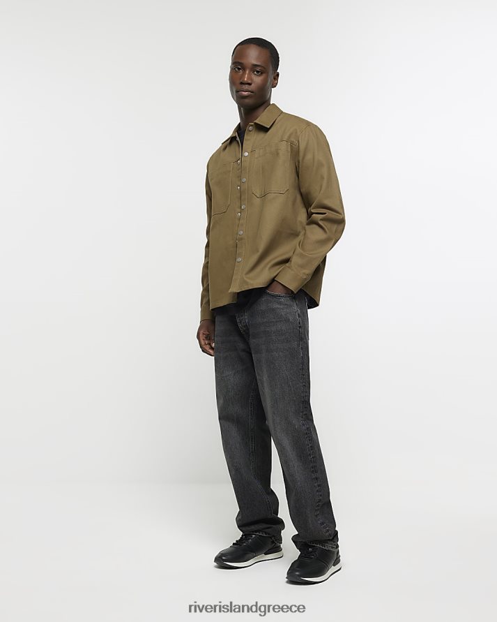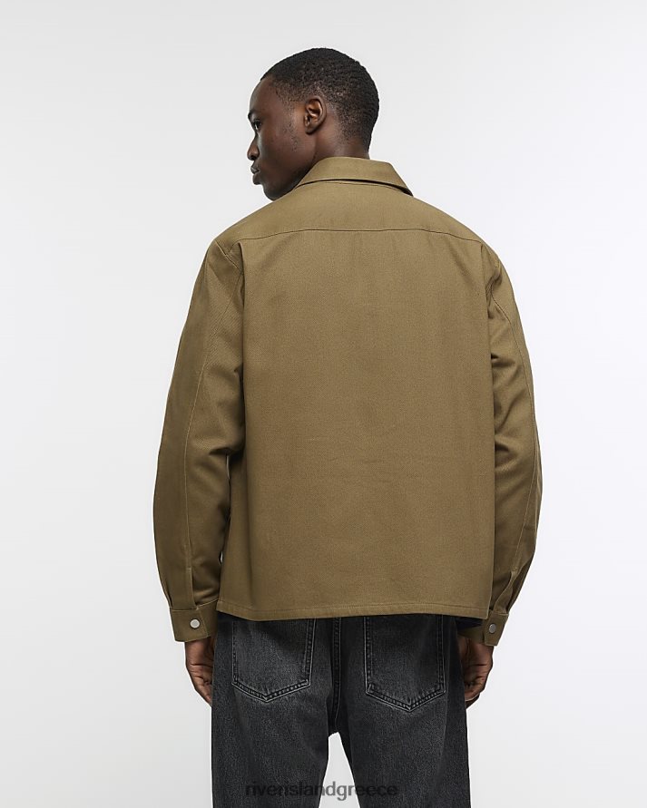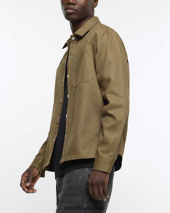 River Island ενδύματα χακί άνδρες μπλουζάκι με κανονική εφαρμογή popper μπροστά B6N8X2411