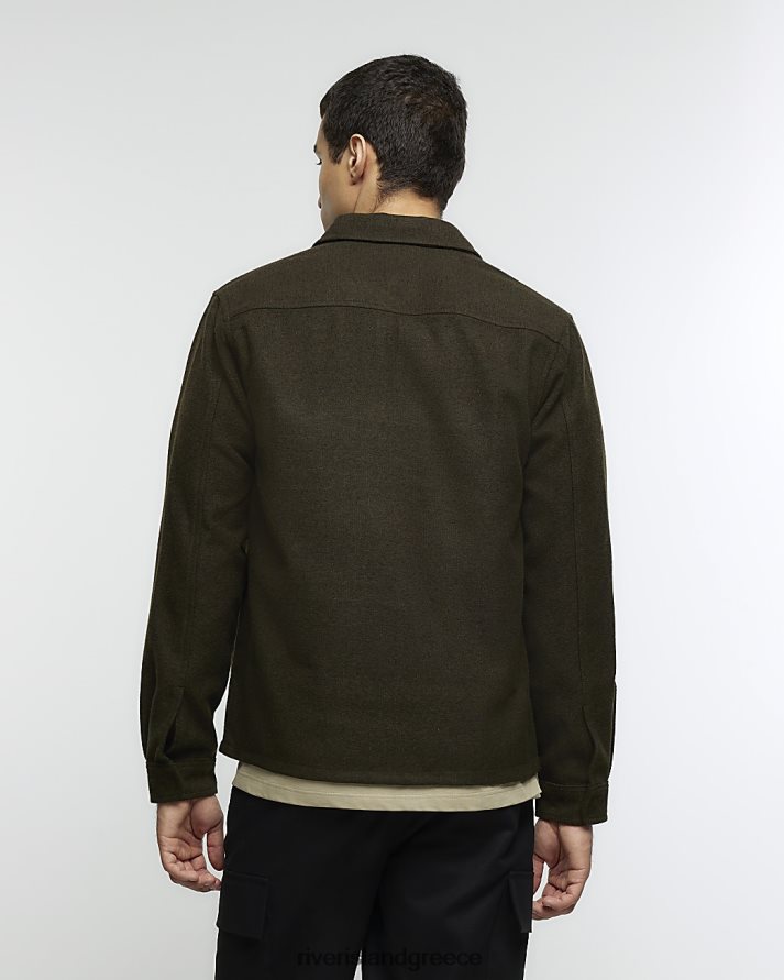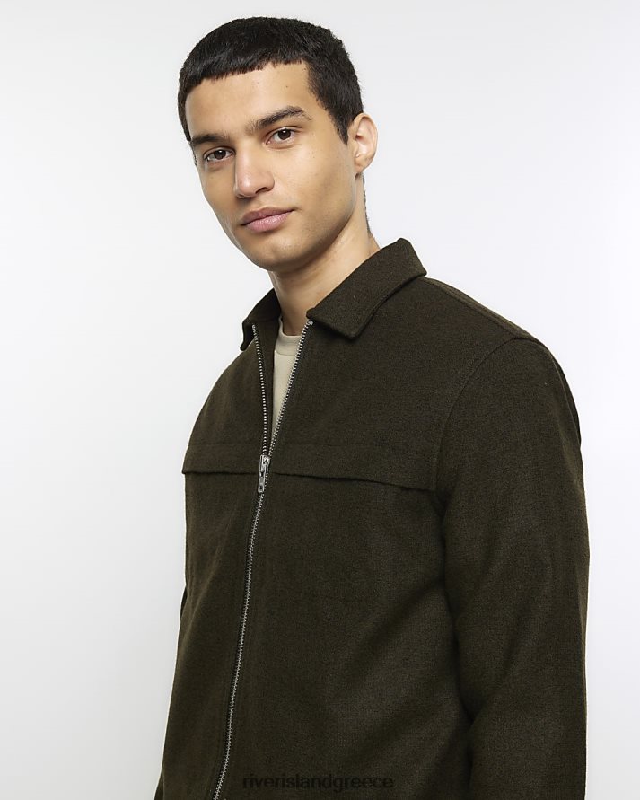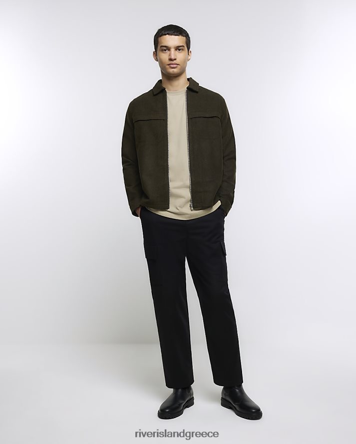 River Island ενδύματα χακί άνδρες Μπλουζάκι με φερμουάρ σε κανονική εφαρμογή B6N8X5402
