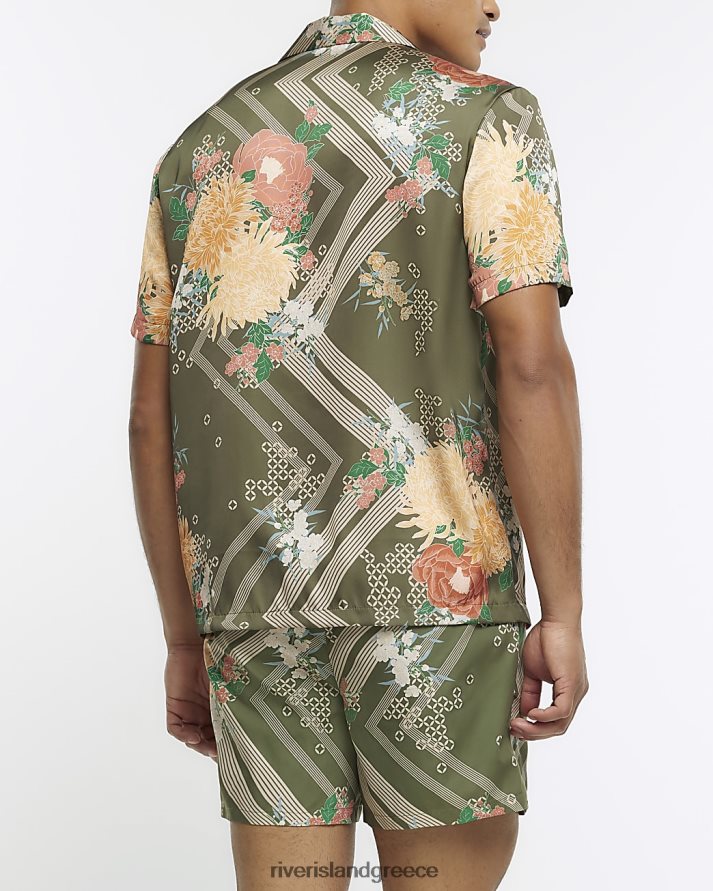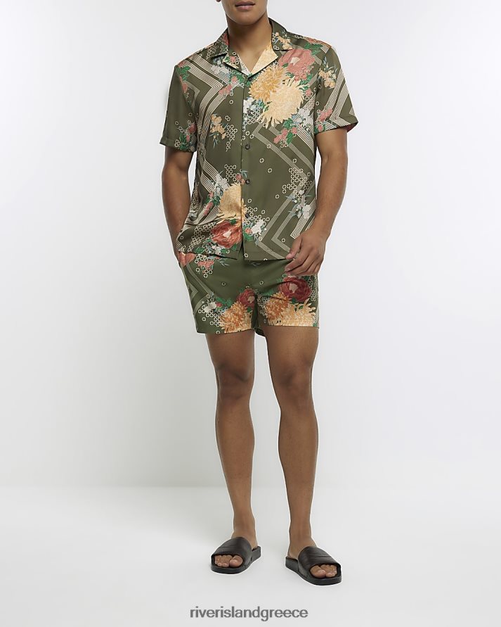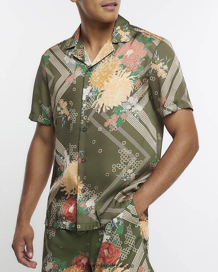 River Island ενδύματα χακί άνδρες Πουκάμισο Revere με κανονική εφαρμογή B6N8X2817