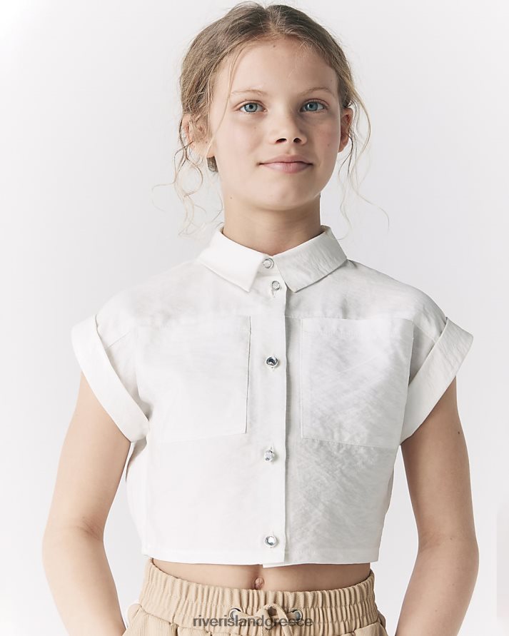 River Island ενδύματα άσπρο κορίτσια g κοντομάνικο crop πουκάμισο B6N8X3342