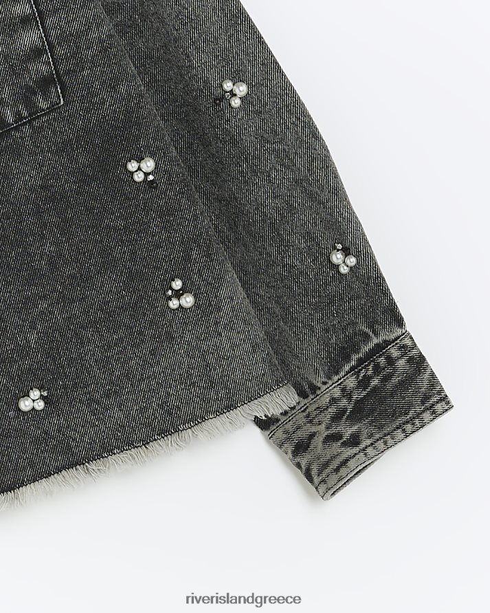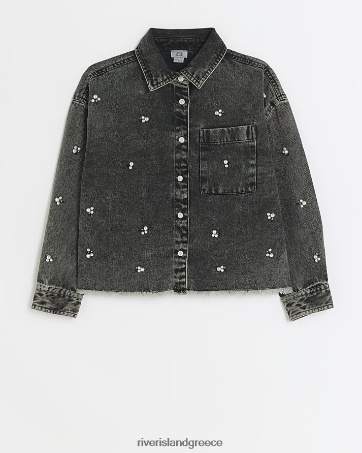 River Island ενδύματα μαύρος κορίτσια g διακοσμημένο τζιν πουκάμισο B6N8X6107