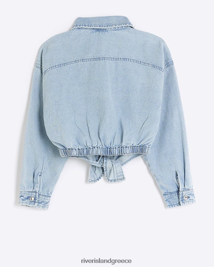 River Island ενδύματα μπλε κορίτσια g τζιν διακοσμημένο πουκάμισο με γραβάτα μπροστά B6N8X6128