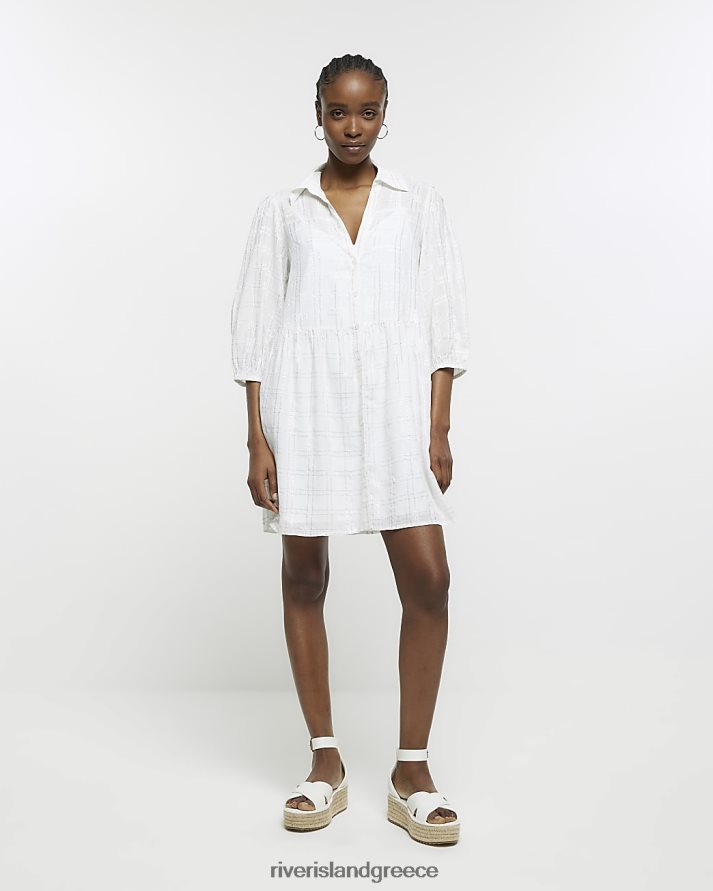 River Island ενδύματα κρέμα γυναίκες check smock μίνι πουκάμισο φόρεμα B6N8X1776