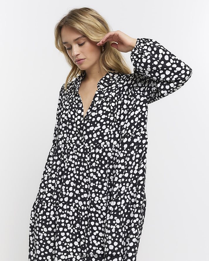 River Island ενδύματα μαύρος γυναίκες Μίνι μακρυμάνικο πουκάμισο φόρεμα B6N8X2161