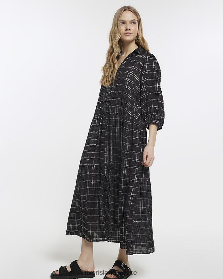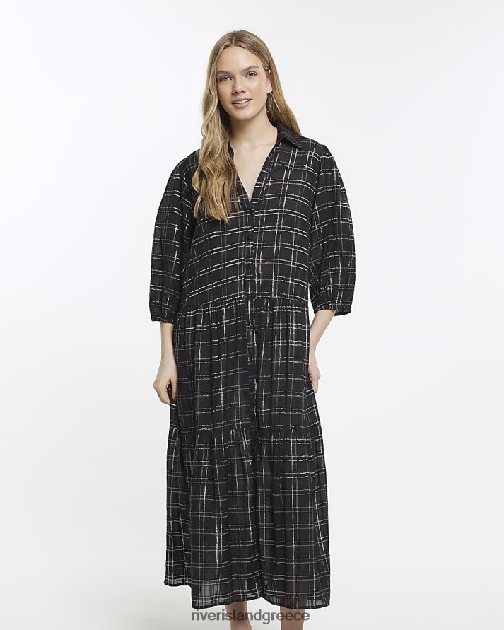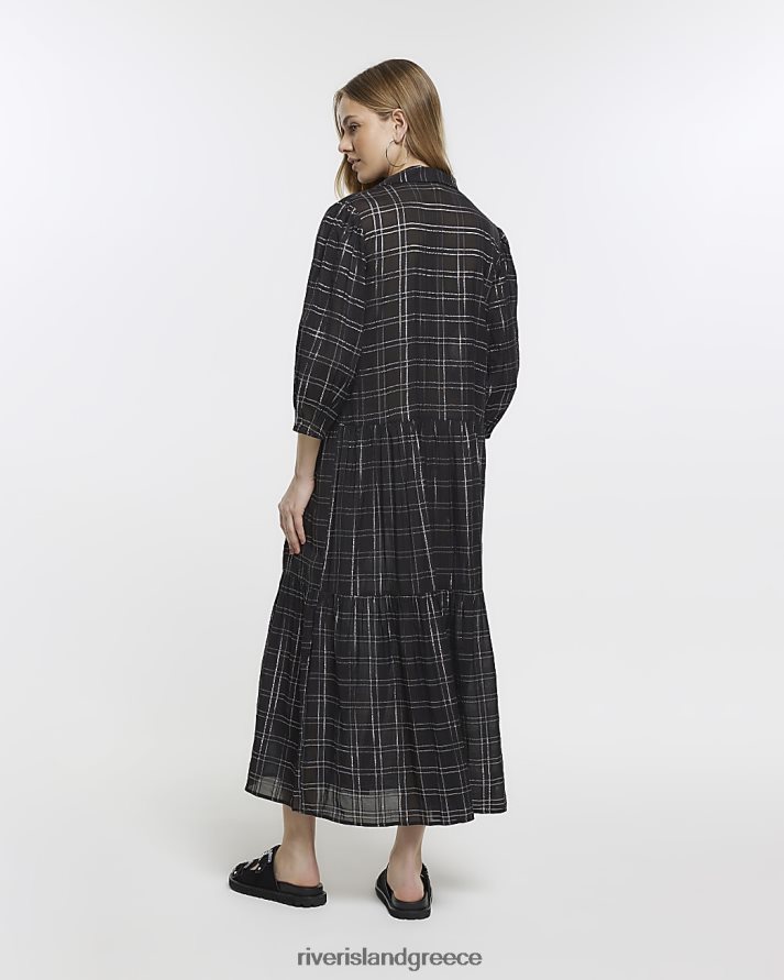River Island ενδύματα μαύρος γυναίκες check smock midi πουκάμισο φόρεμα B6N8X1634