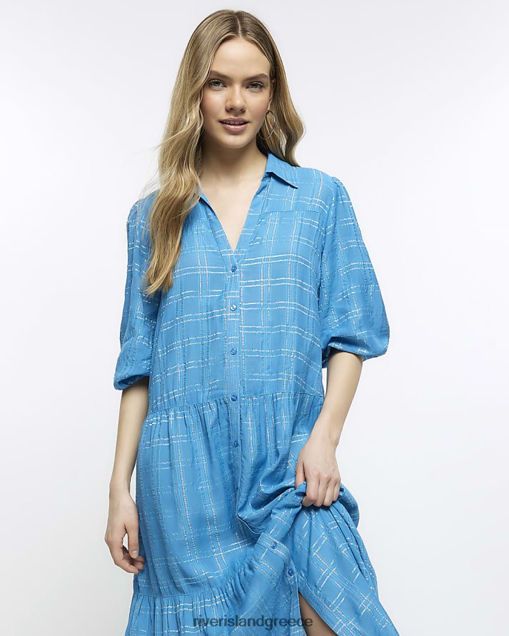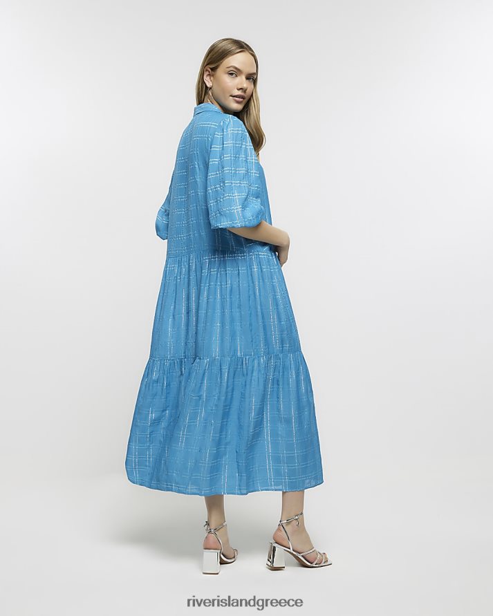 River Island ενδύματα μπλε γυναίκες check smock midi πουκάμισο φόρεμα B6N8X1635