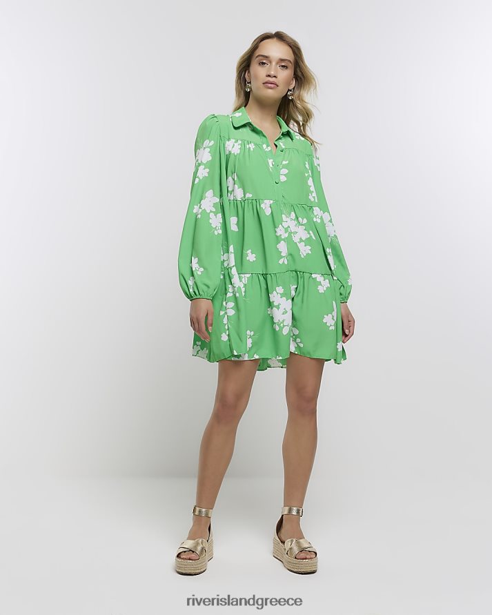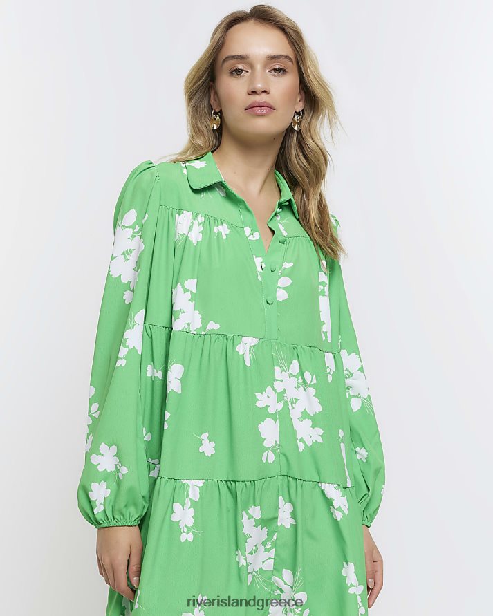 River Island ενδύματα πράσινος γυναίκες μακρυμάνικο φλοράλ μίνι πουκάμισο φόρεμα B6N8X2162