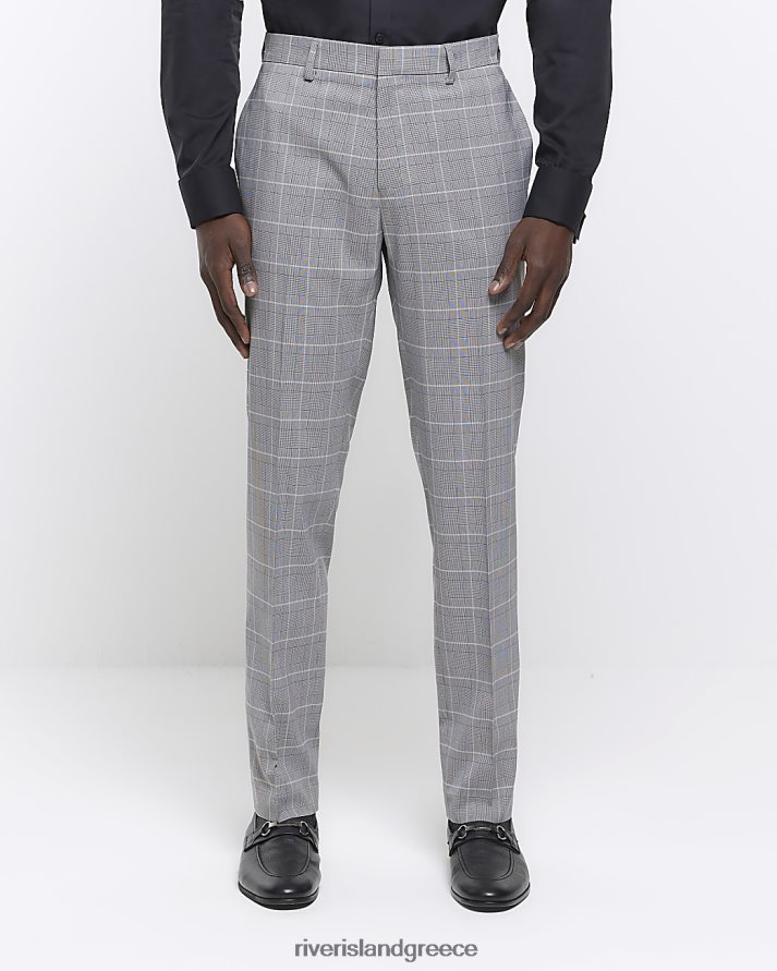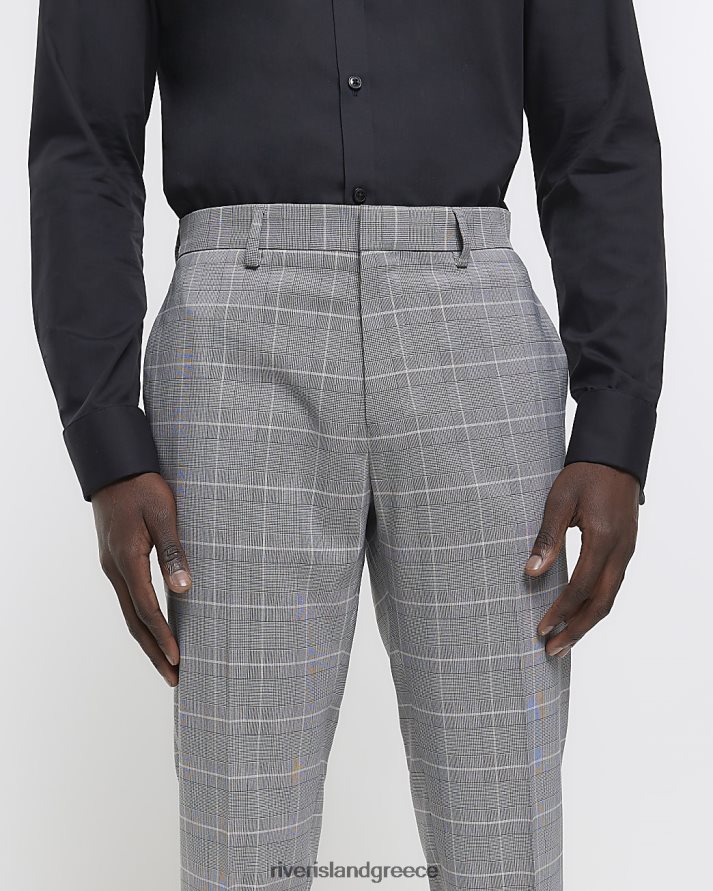 River Island ενδύματα γκρί άνδρες έξυπνο παντελόνι με skinny fit check B6N8X5800