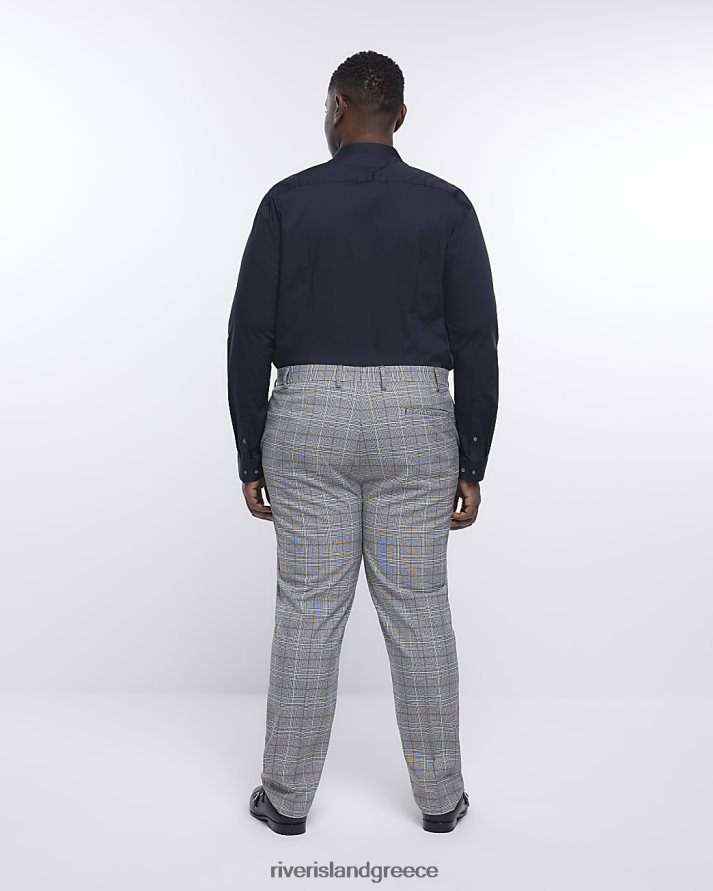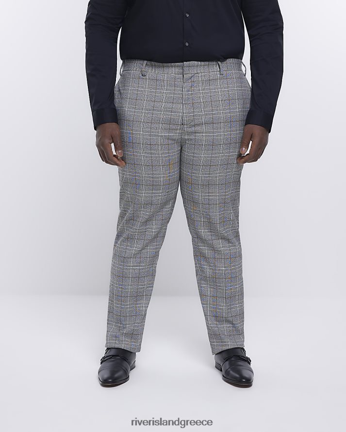 River Island ενδύματα γκρί άνδρες μεγάλο & ψηλό slim fit check παντελόνι B6N8X5968