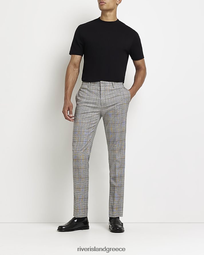 River Island ενδύματα γκρί άνδρες slim fit check παντελόνι B6N8X3098