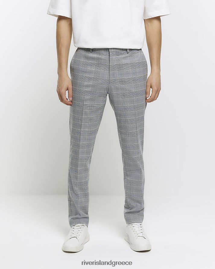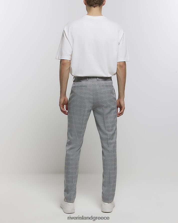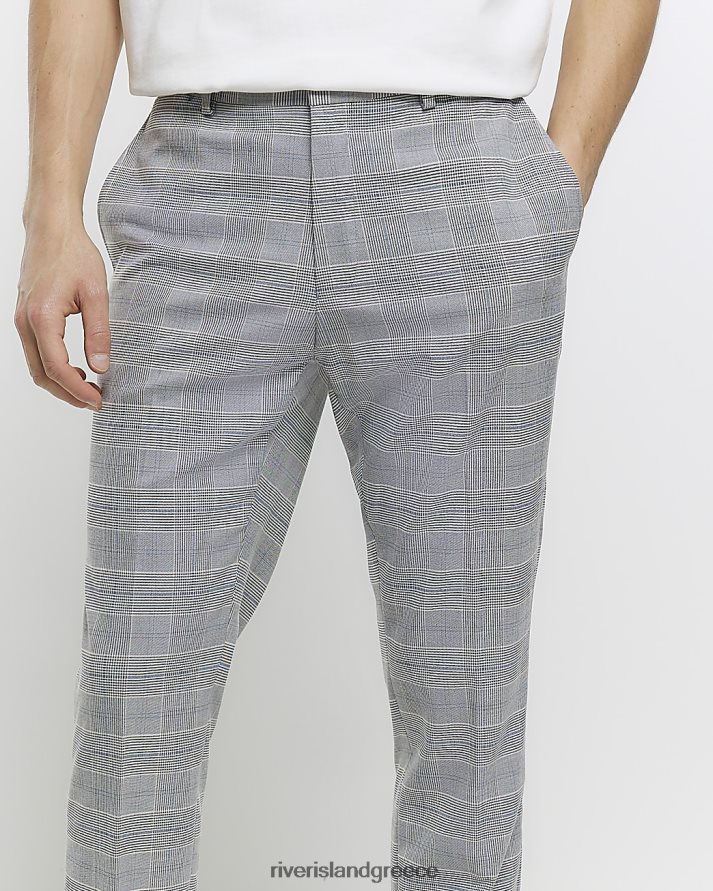 River Island ενδύματα γκρί άνδρες slim fit check παντελόνι B6N8X5455