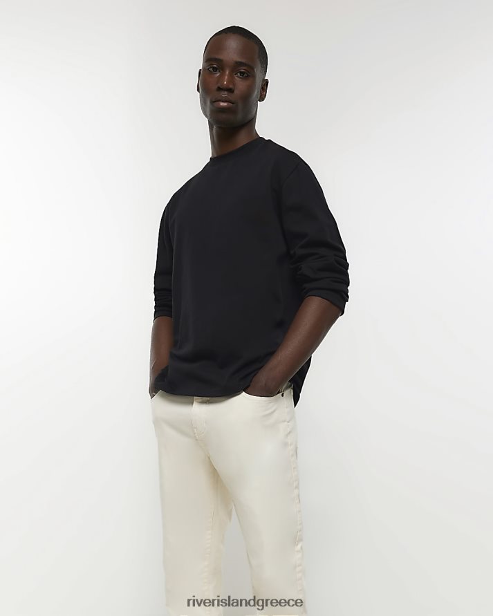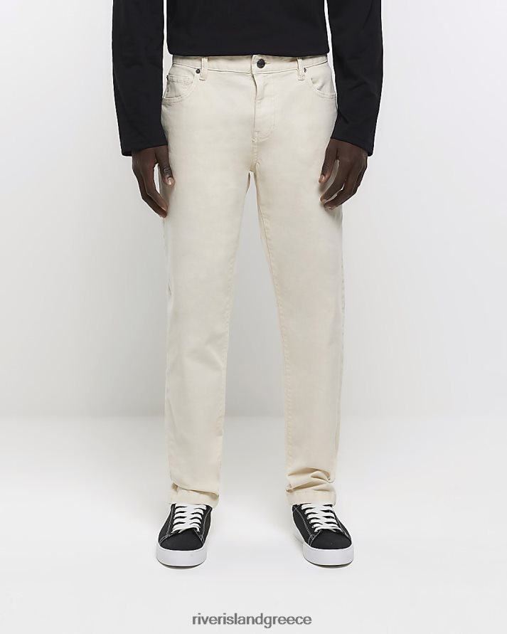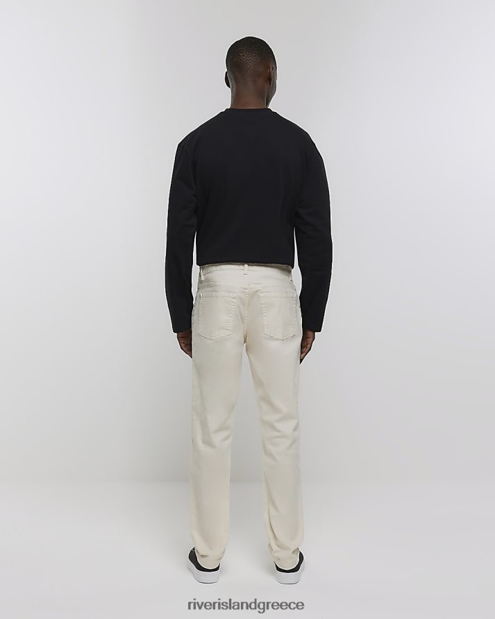 River Island ενδύματα εκρού άνδρες παντελόνι chino με λεπτή υφή B6N8X2948