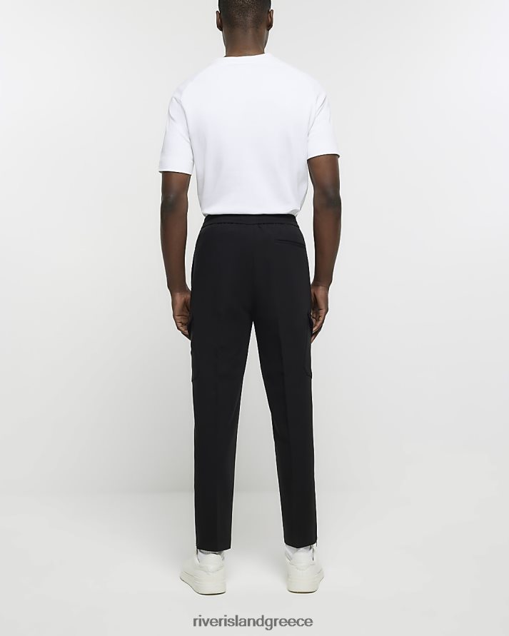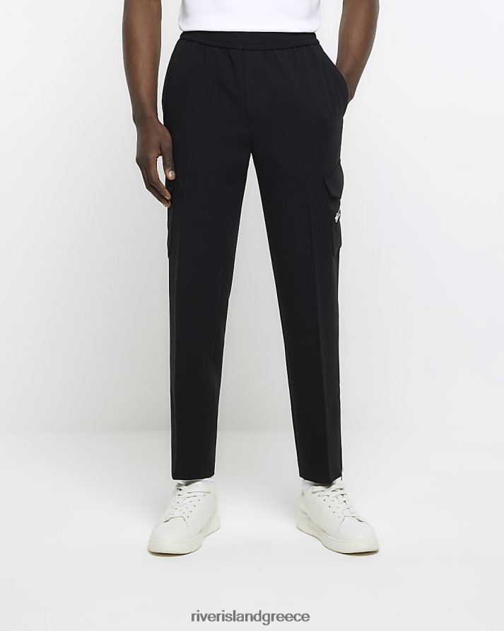 River Island ενδύματα μαύρος άνδρες έξυπνο παντελόνι cargo σε κανονική εφαρμογή B6N8X3028