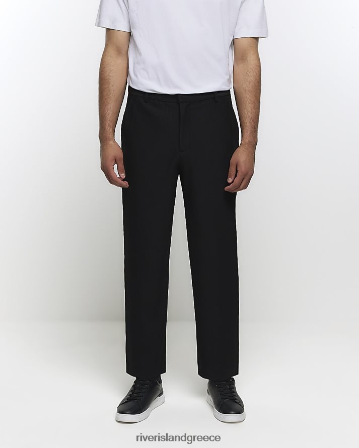 River Island ενδύματα μαύρος άνδρες έξυπνο παντελόνι plisse με κωνική εφαρμογή B6N8X2372