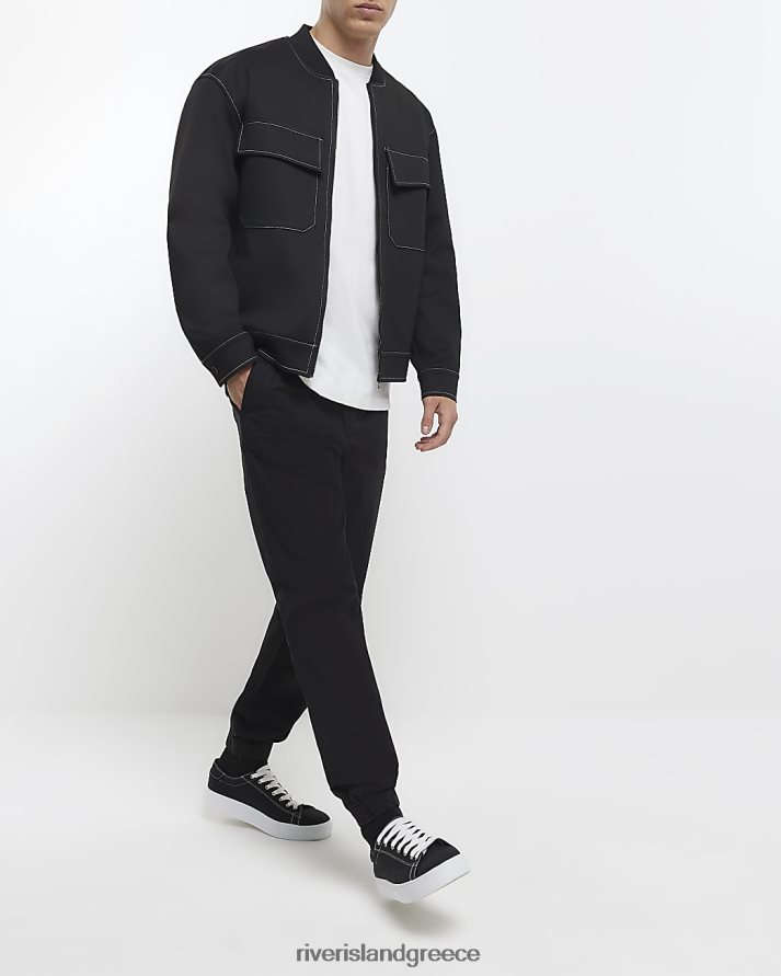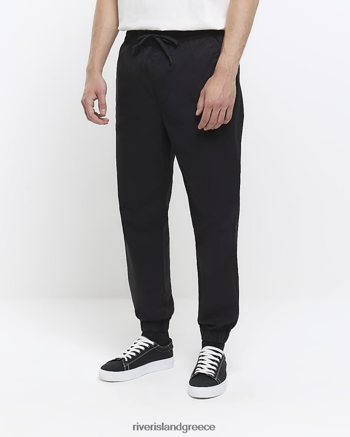 River Island ενδύματα μαύρος άνδρες κανονική εφαρμογή έλξη σε παντελόνι με μανσέτες B6N8X2729