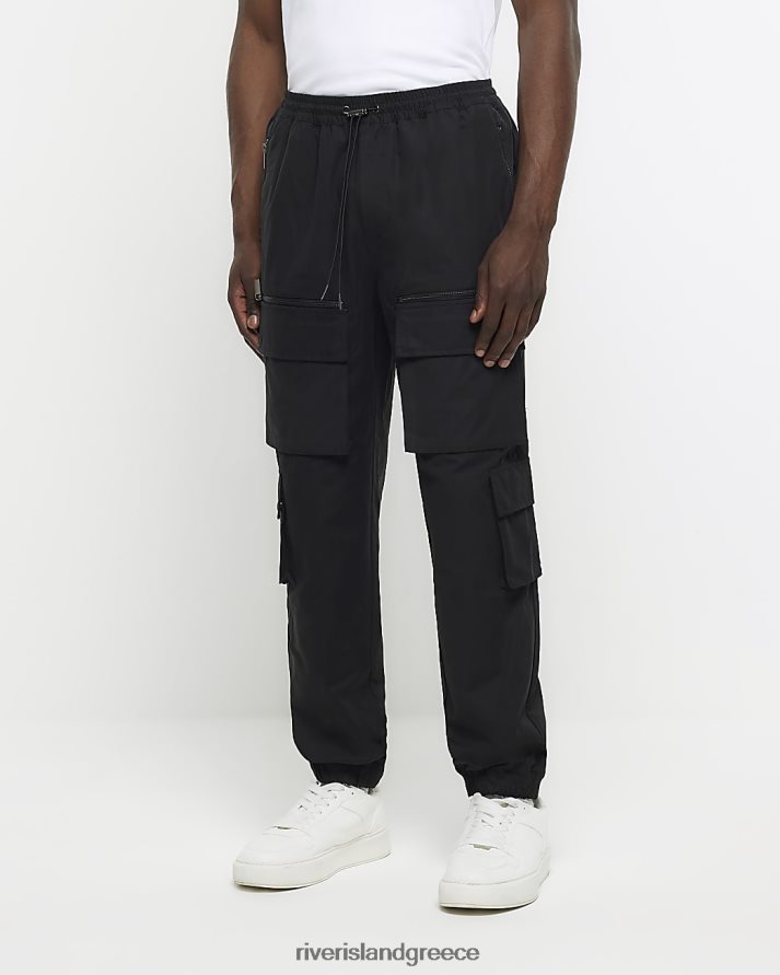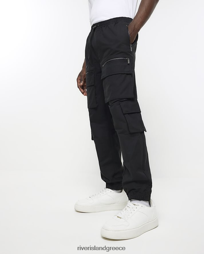 River Island ενδύματα μαύρος άνδρες λεπτή εφαρμογή cargo παντελόνι με πολλές τσέπες B6N8X2422