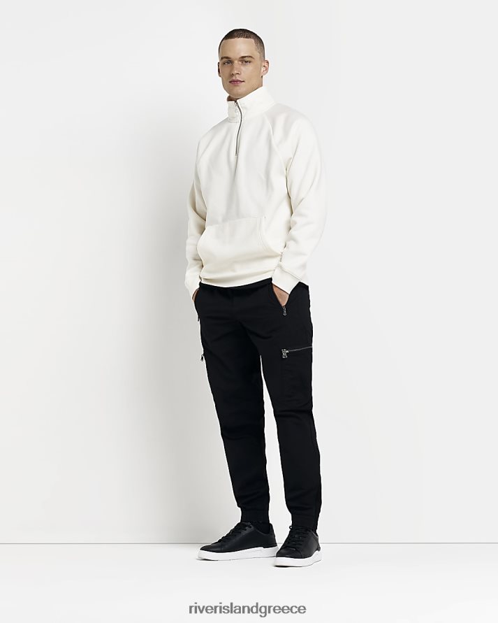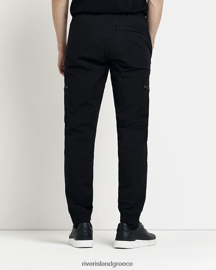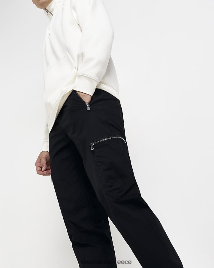 River Island ενδύματα μαύρος άνδρες slim fit φερμουάρ cargo παντελόνι B6N8X3087
