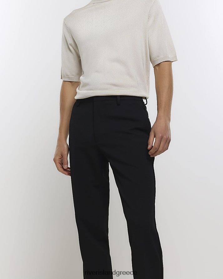 River Island ενδύματα μαύρος άνδρες slim fit waffle smart παντελόνι B6N8X2919
