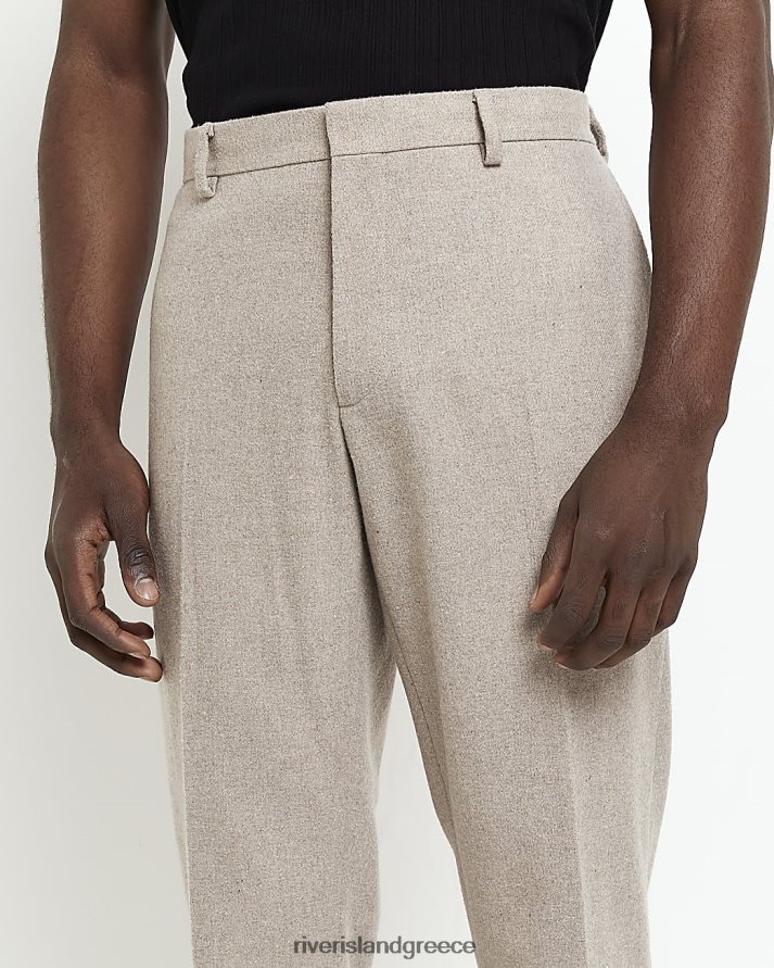 River Island ενδύματα μπεζ άνδρες φανελένιο παντελόνι σε λεπτή εφαρμογή B6N8X3012