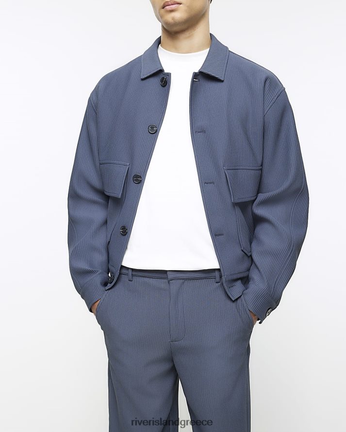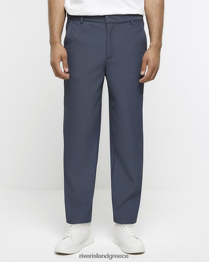 River Island ενδύματα μπλε άνδρες έξυπνο παντελόνι plisse με κωνική εφαρμογή B6N8X2373