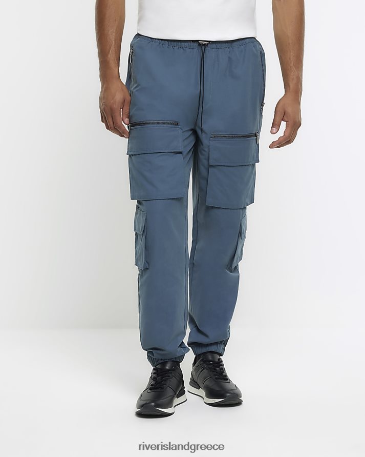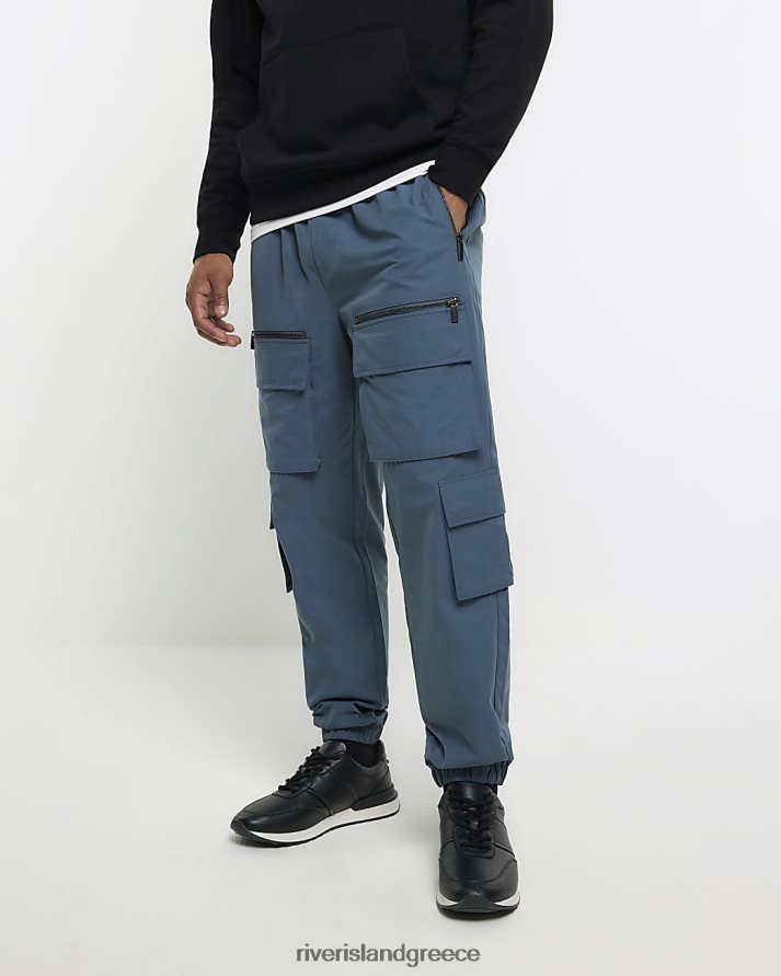 River Island ενδύματα μπλε άνδρες λεπτή εφαρμογή cargo παντελόνι με πολλές τσέπες B6N8X2421