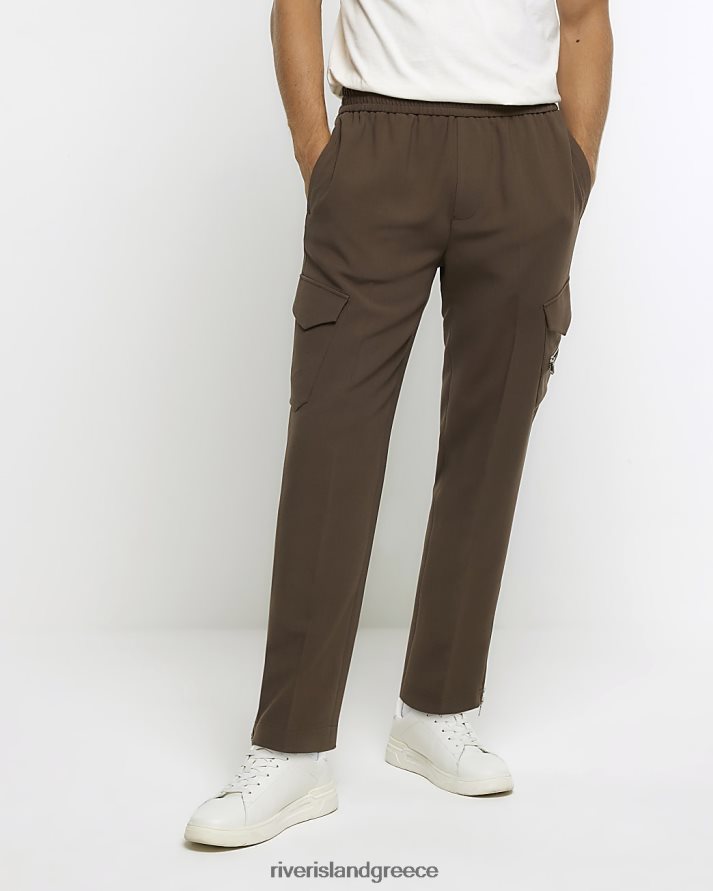 River Island ενδύματα πέτρα άνδρες έξυπνο παντελόνι cargo σε κανονική εφαρμογή B6N8X3029