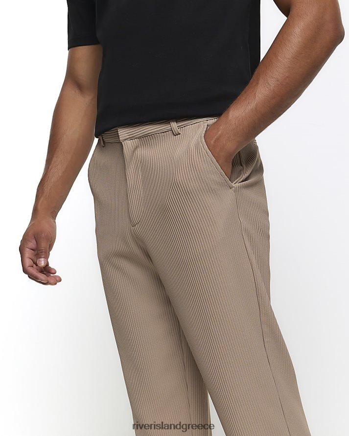 River Island ενδύματα πέτρα άνδρες παντελόνι plisse με κωνική εφαρμογή B6N8X2377